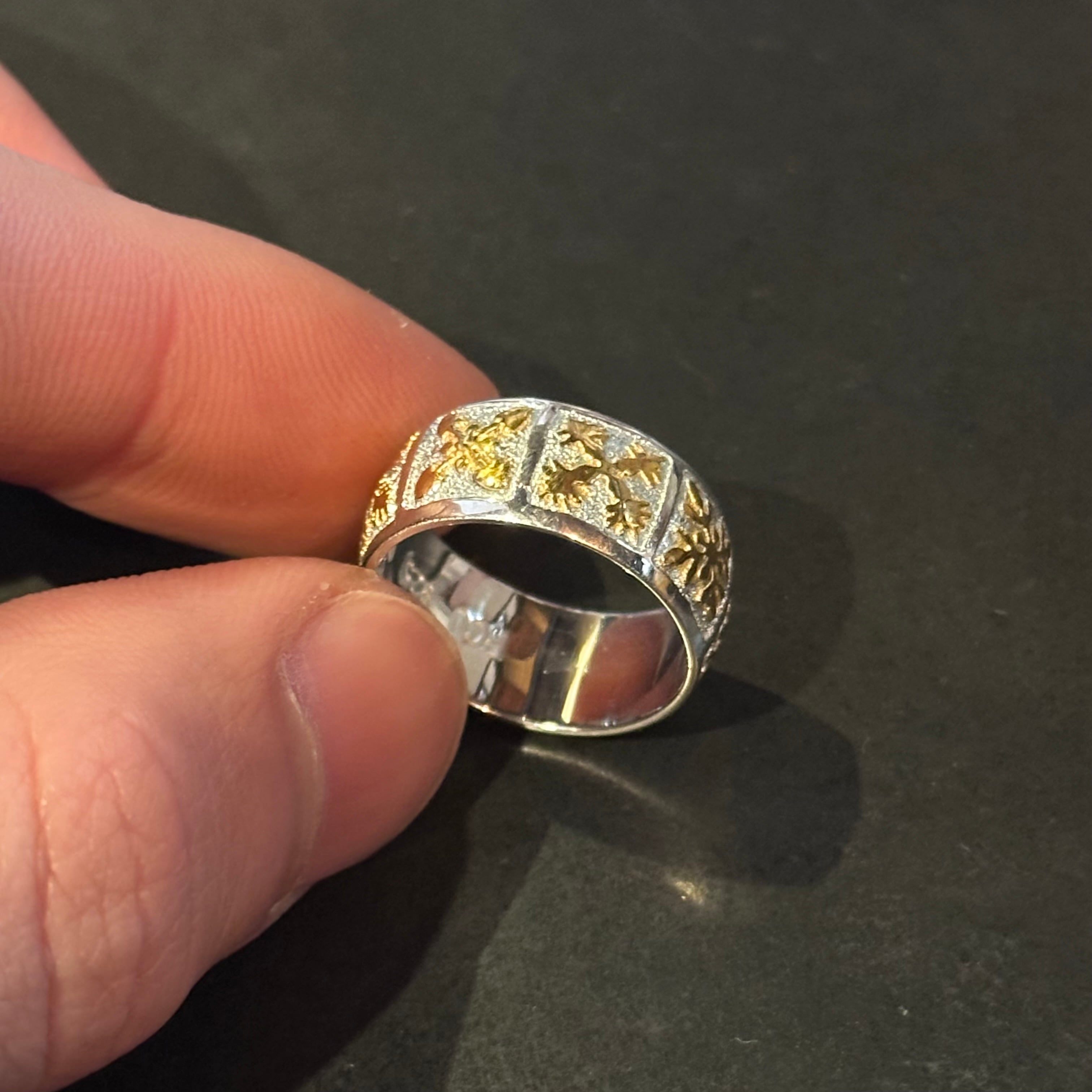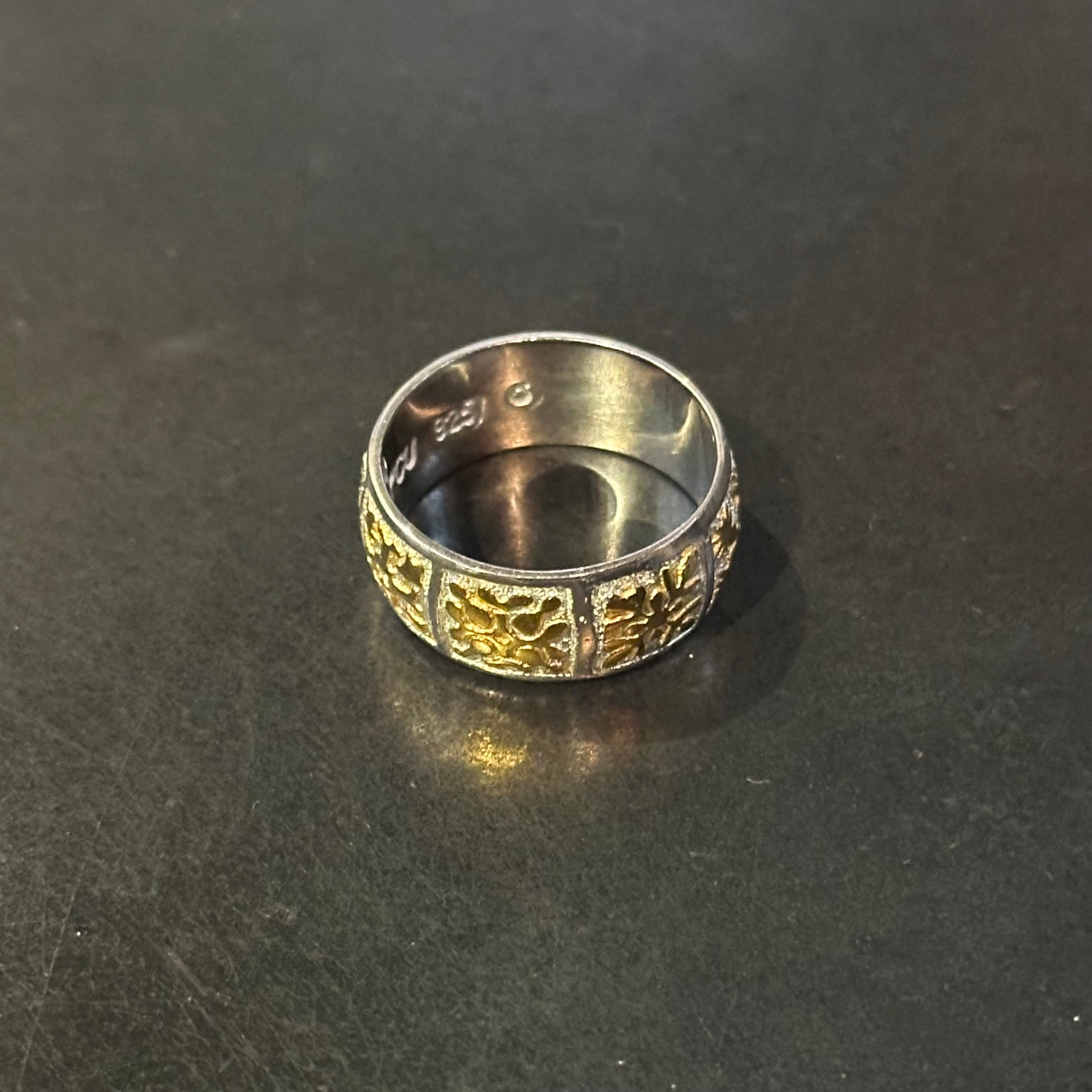 海外で買い付けたゴールドカッティングデザインのシルバーリングです。