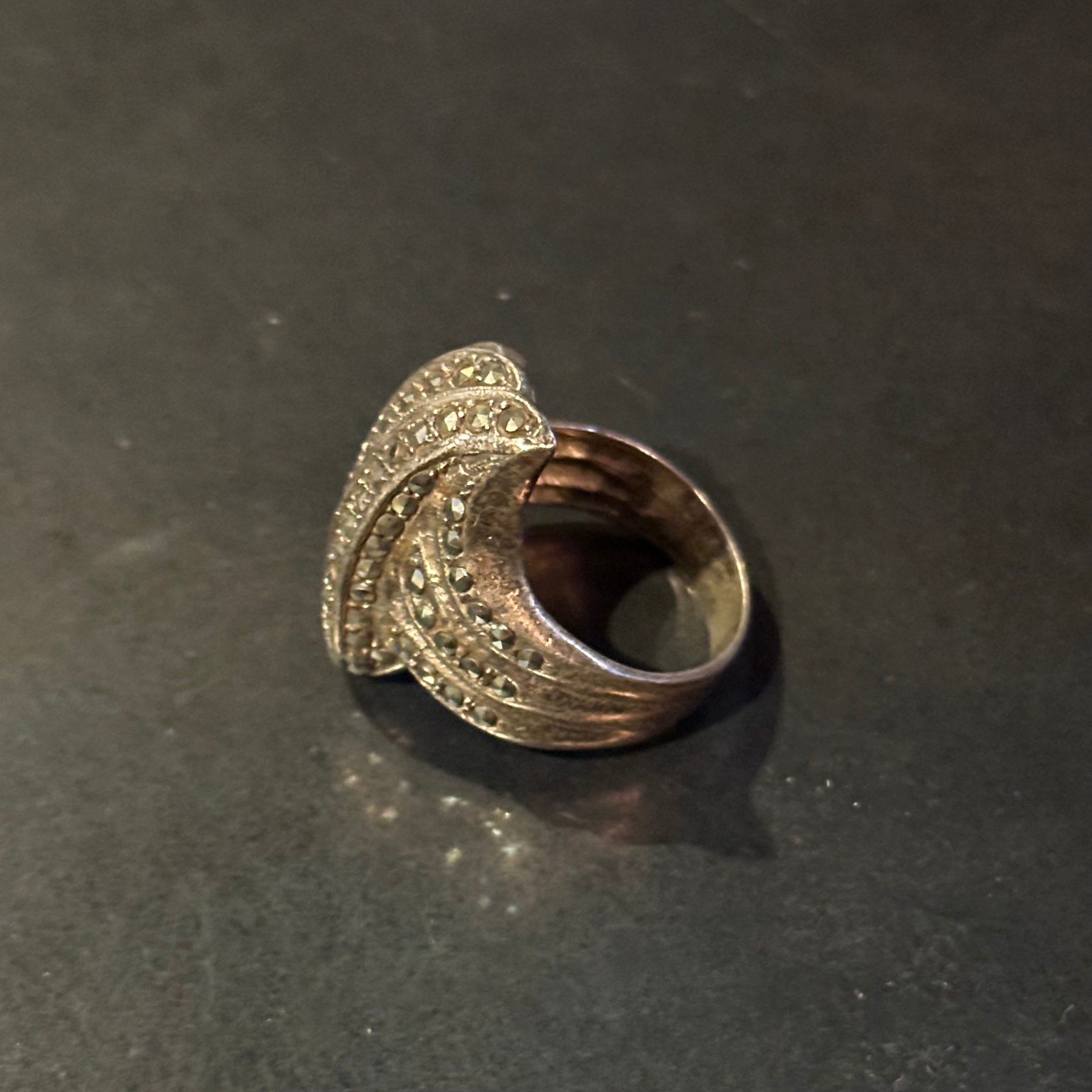 海外で買い付けたキラキラデザインのシルバーリングです。
