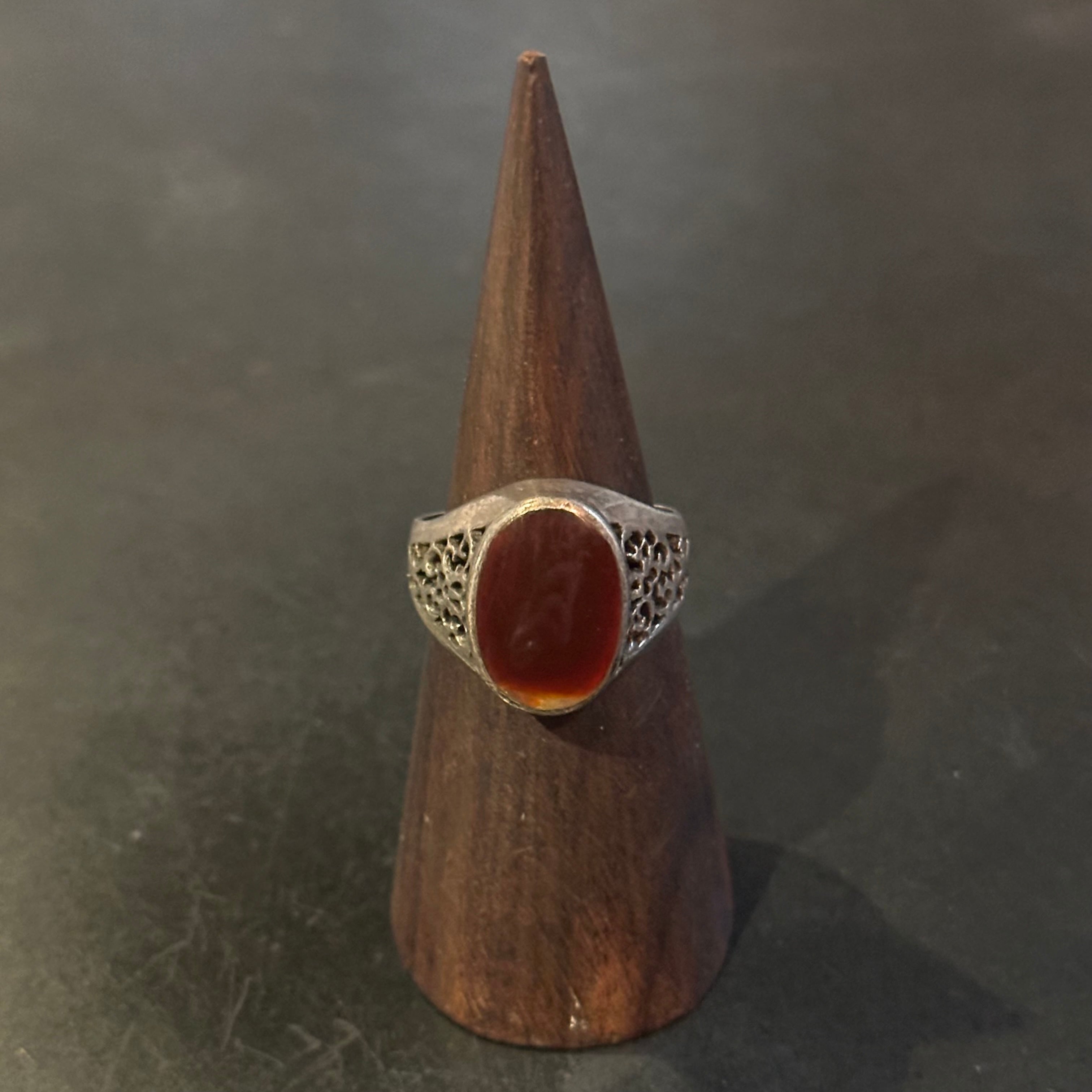 海外で買い付けたレッドストーンデザインのシルバーリングです。