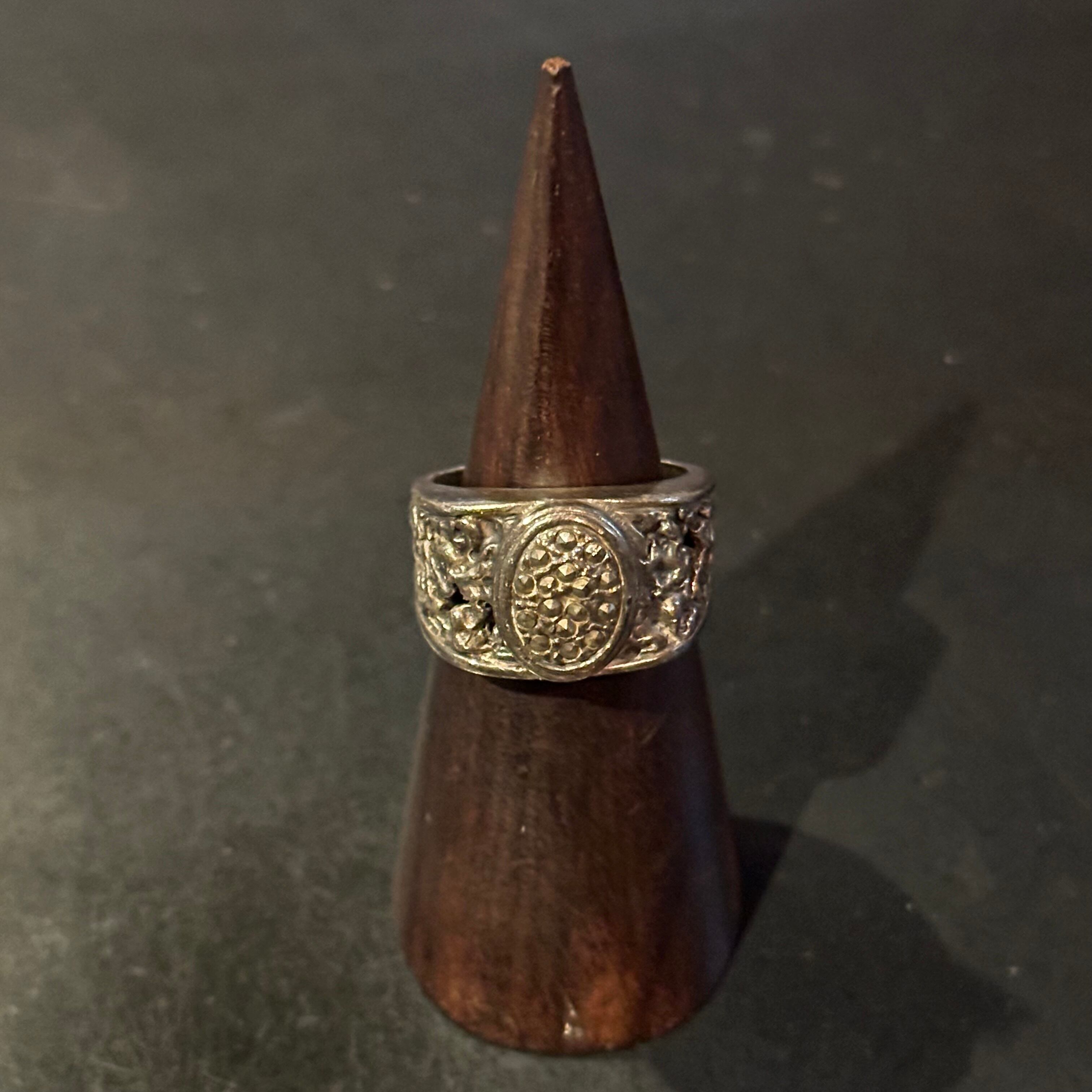 海外で買い付けたキラキラオーバルデザインのシルバーリングです。