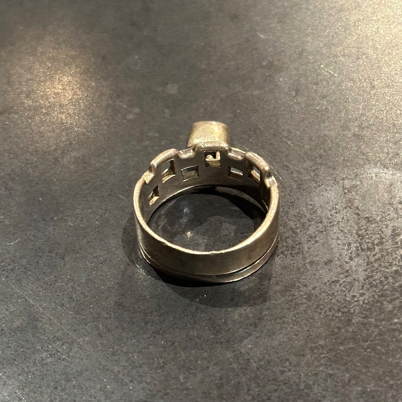 海外で買い付けた南京錠チャームデザインのシルバーリングです。