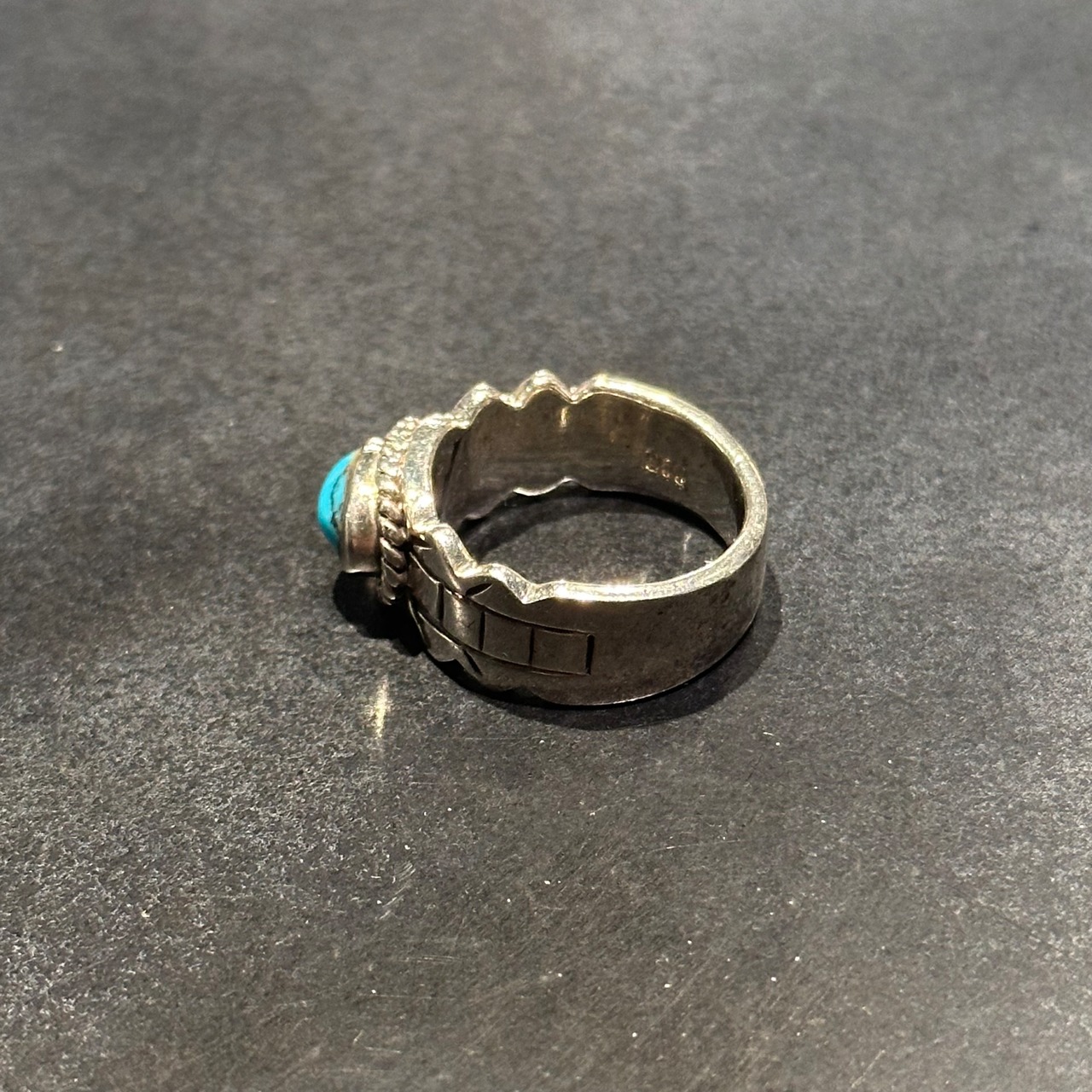海外で買い付けたインディアンターコイズデザインのシルバーリングです。
