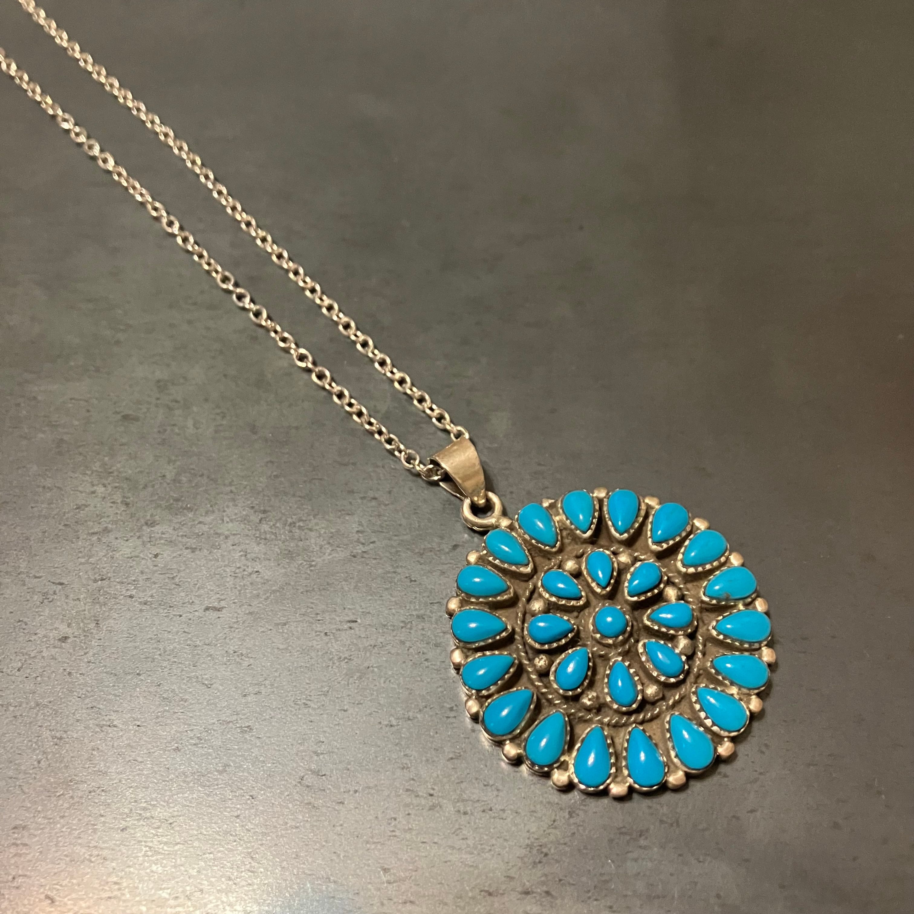 海外で買い付けたインディアンジュエリーのターコイズトップデザインネックレスです。