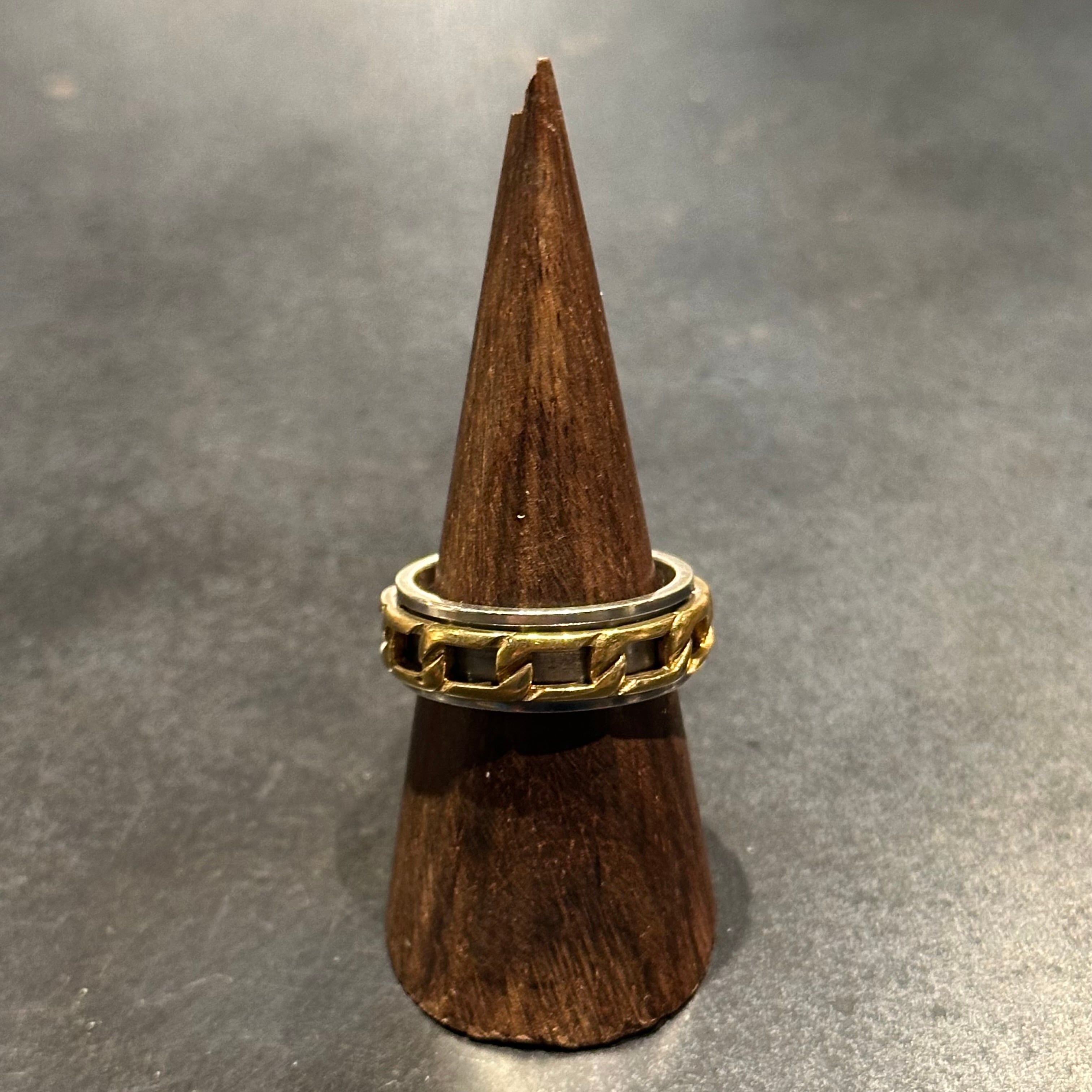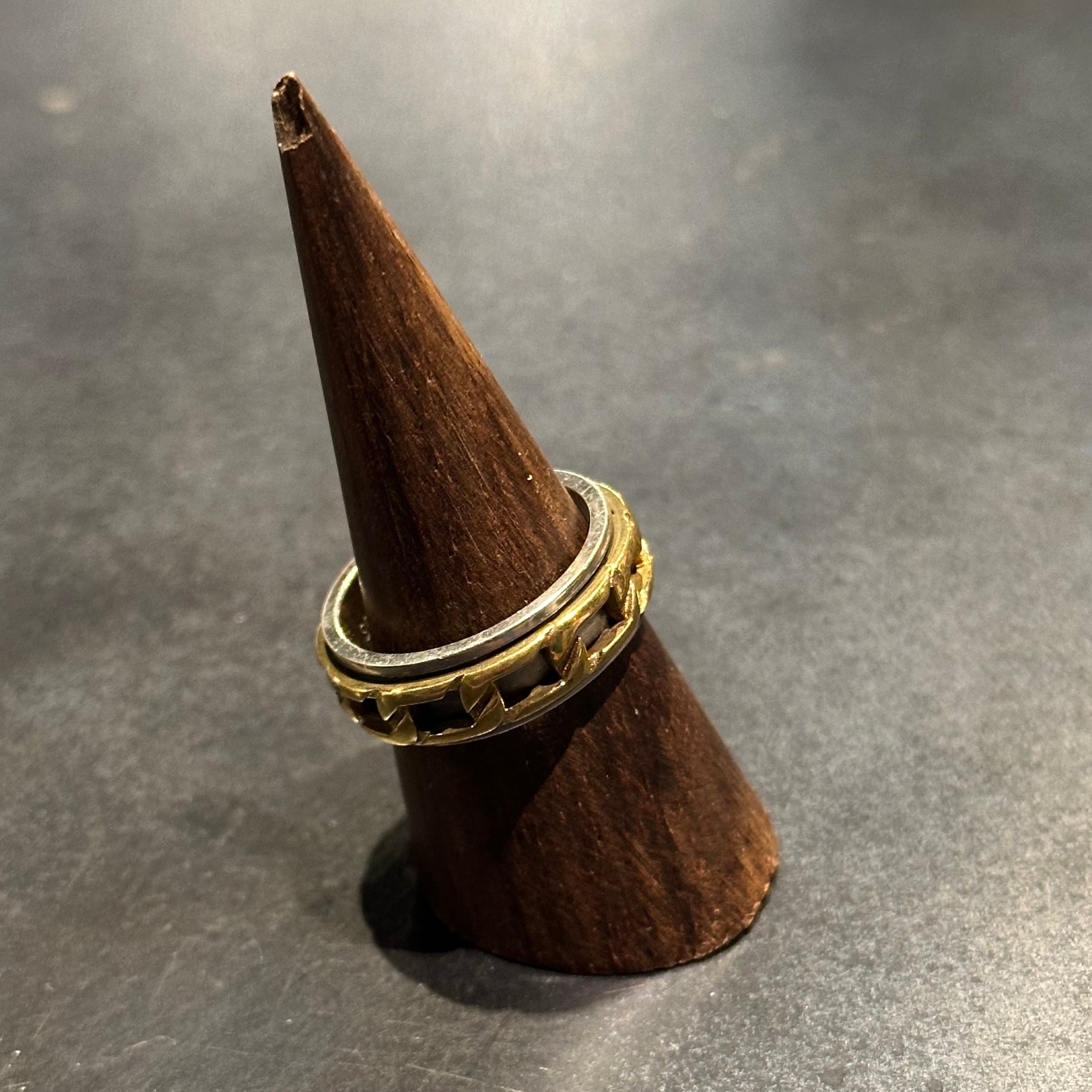 海外で買い付けたムービングチェーンデザインのシルバーリングです。
