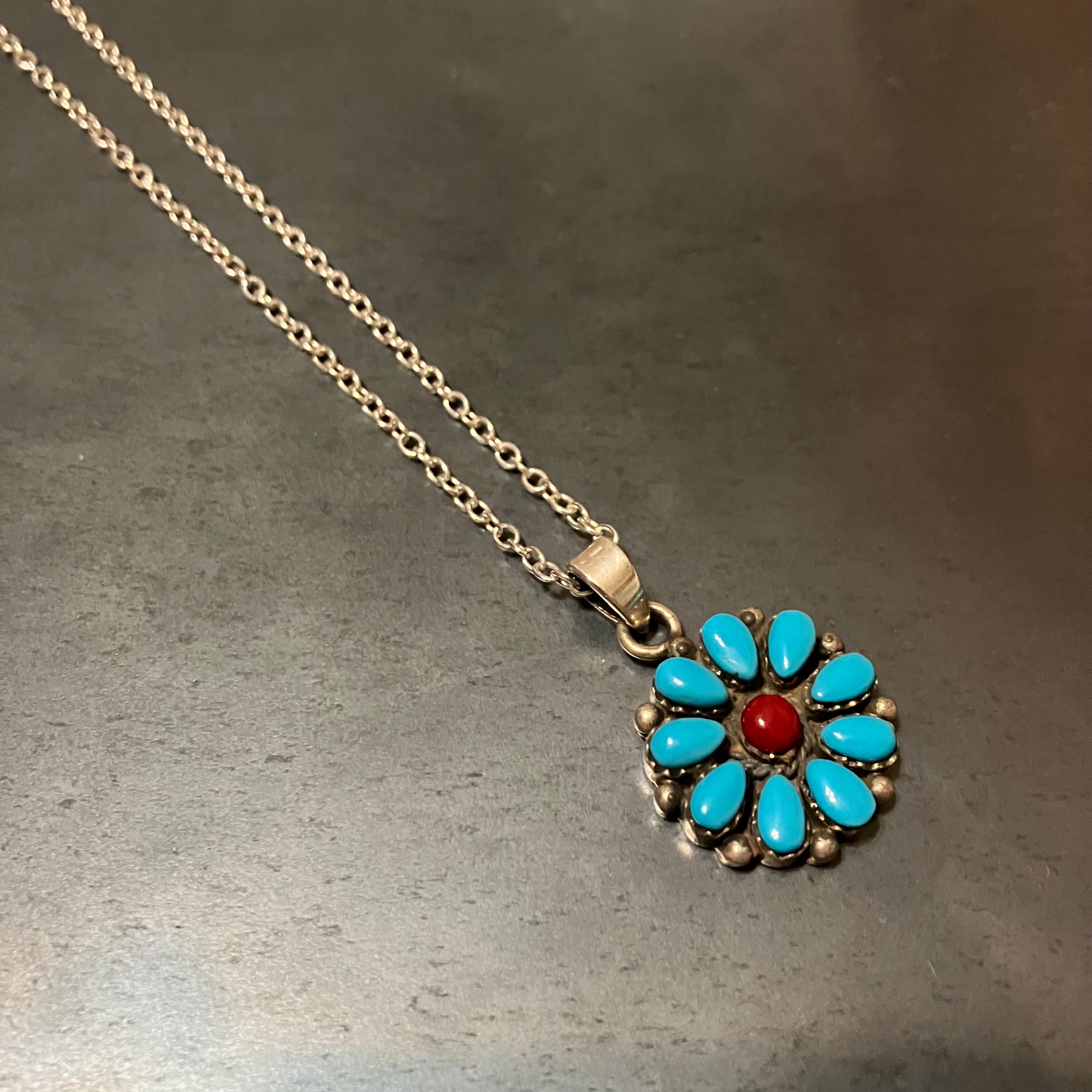 海外で買い付けたインディアンジュエリーのターコイズトップデザインネックレスです。