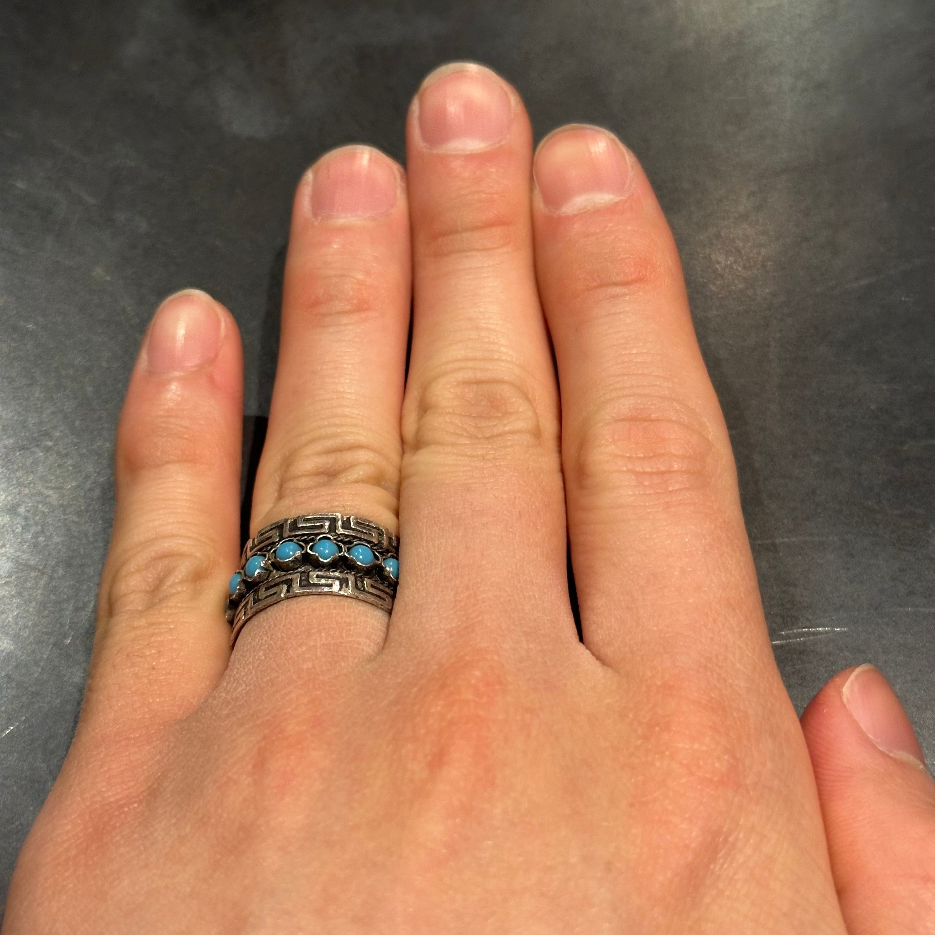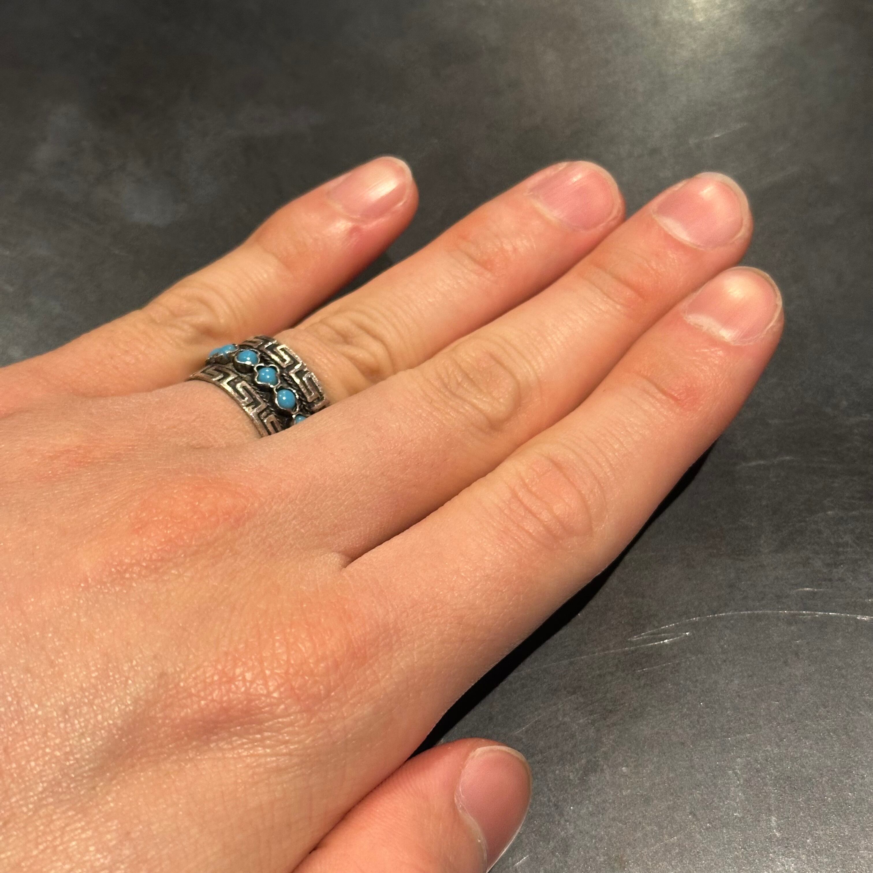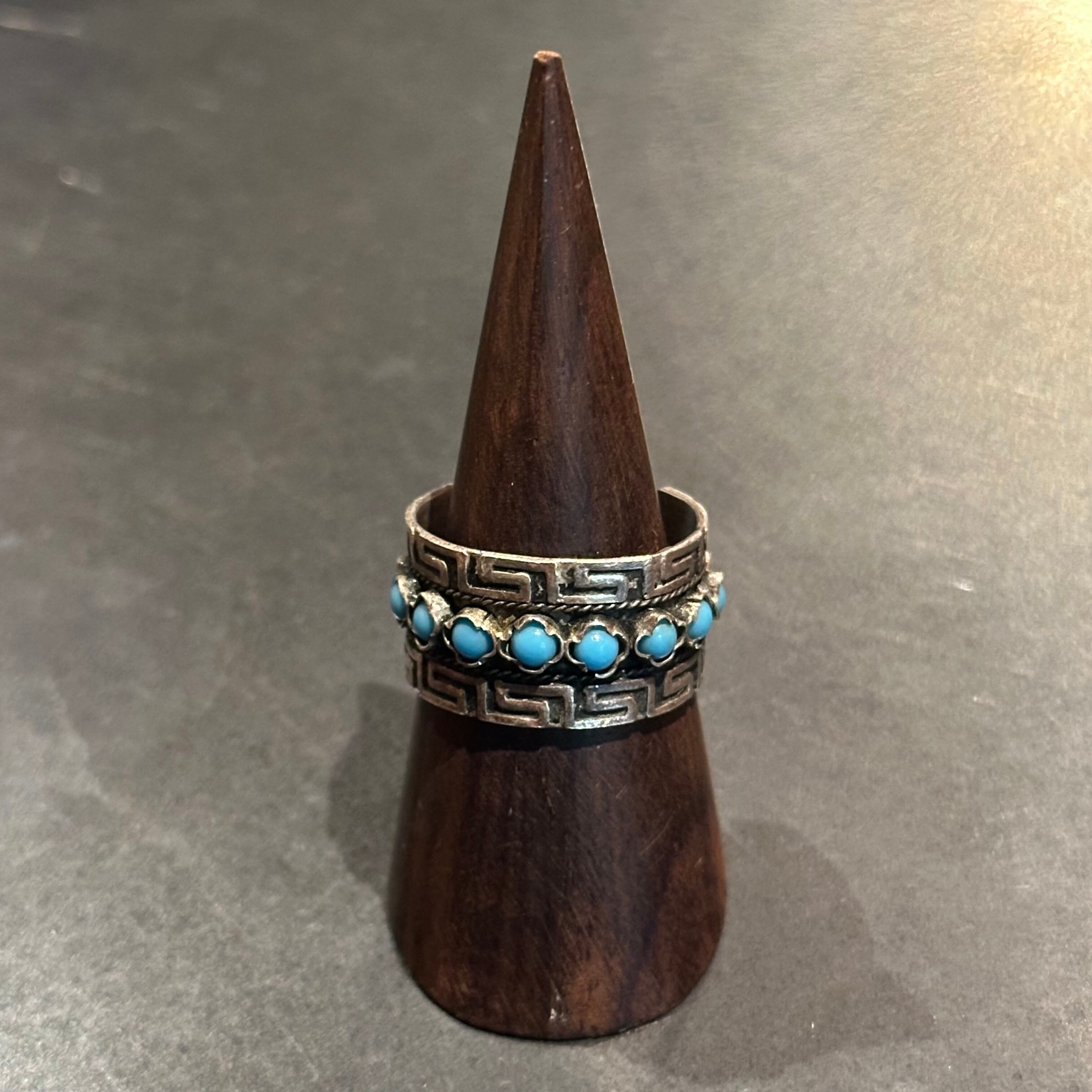 海外で買い付けたターコイズデザインのシルバーリングです。