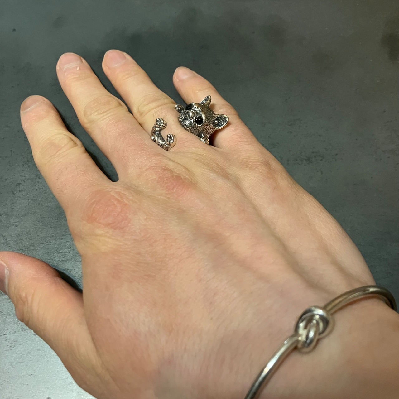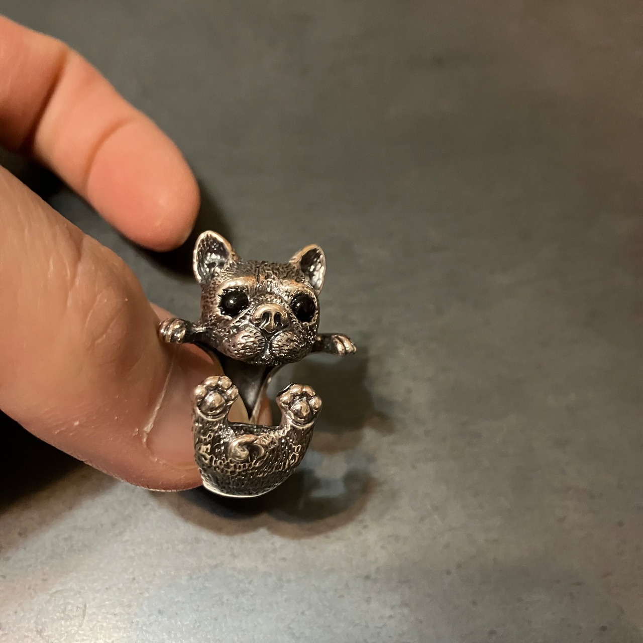 海外で買い付けたパグモチーフデザインのシルバーリングです。