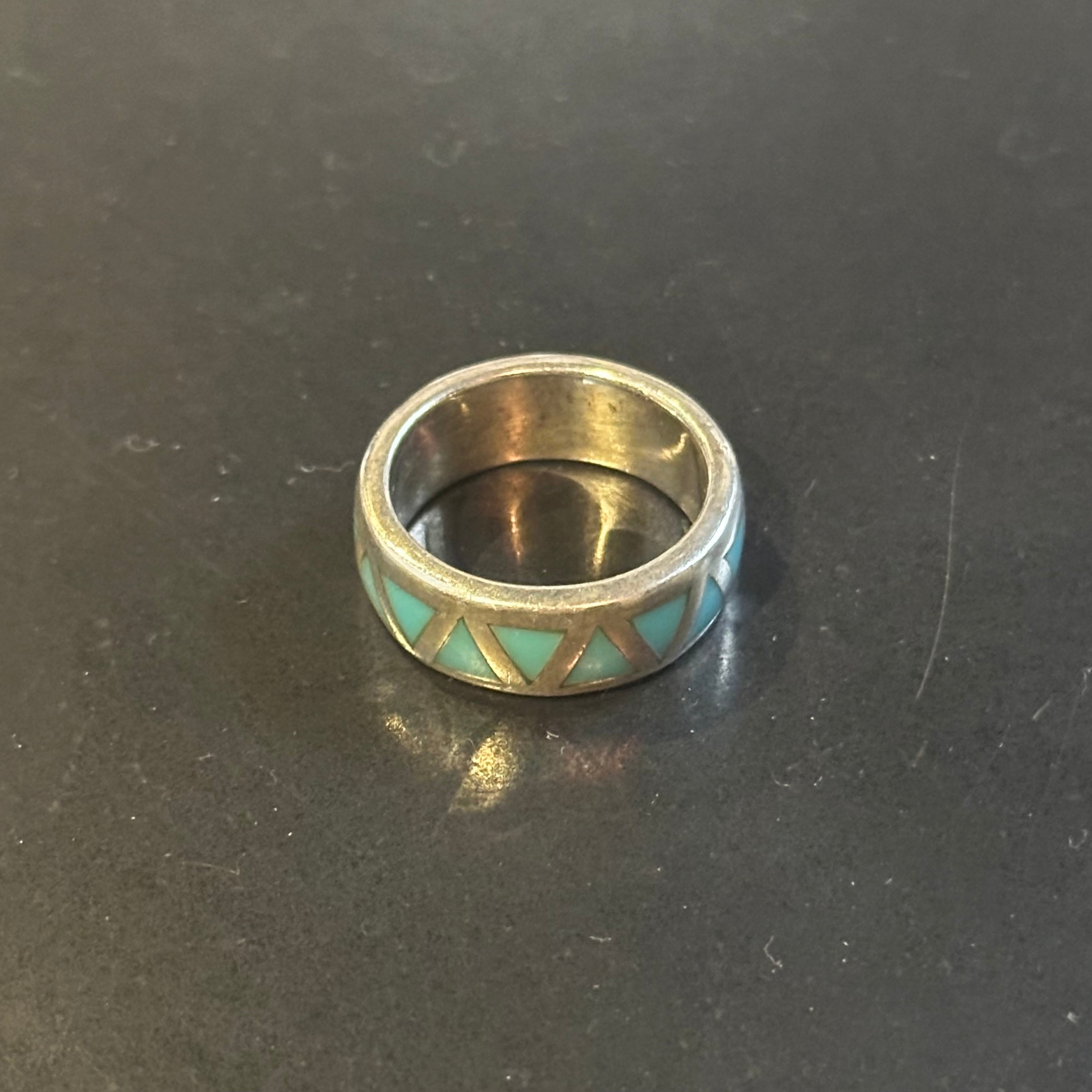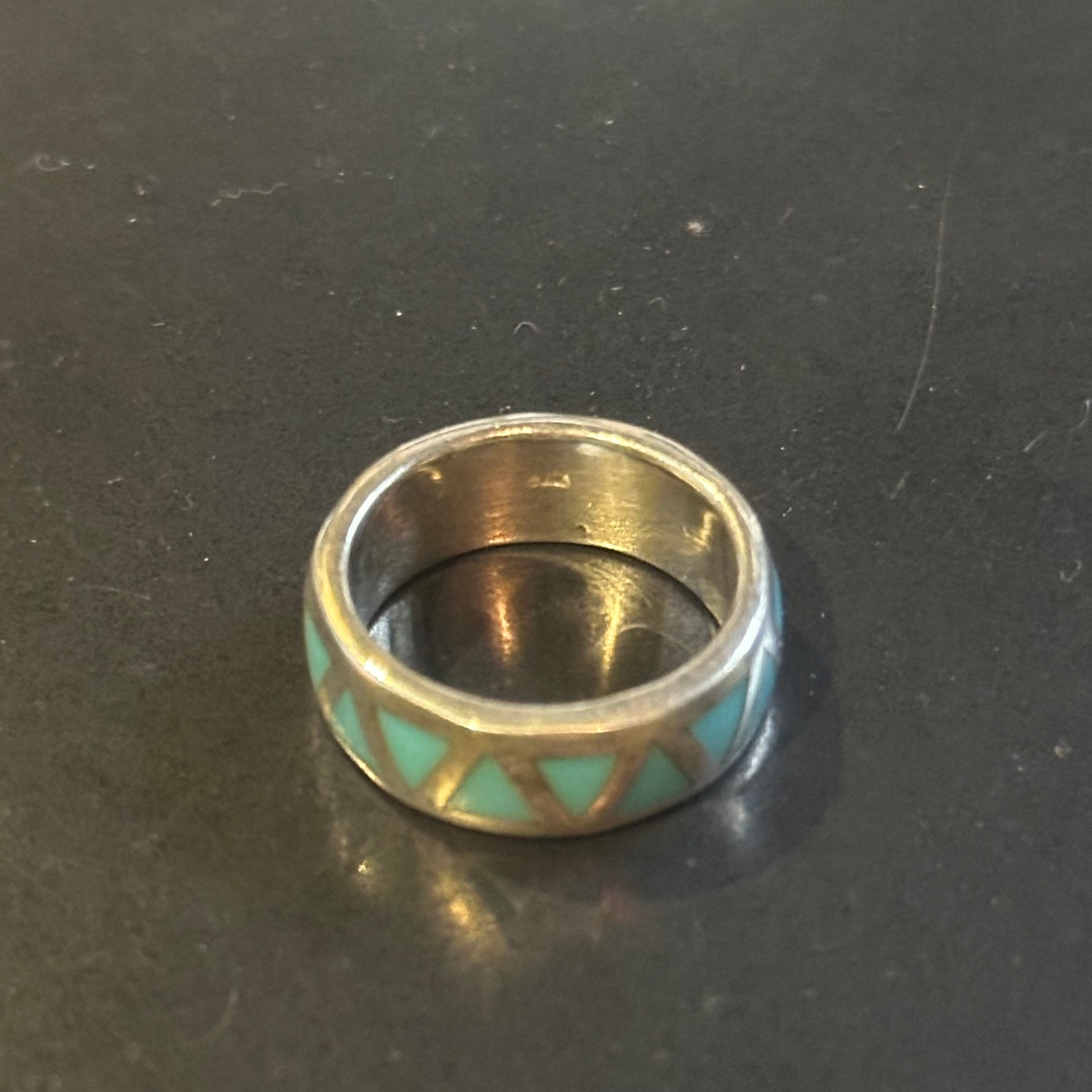 海外で買い付けたターコイズデザインのシルバーリングです。