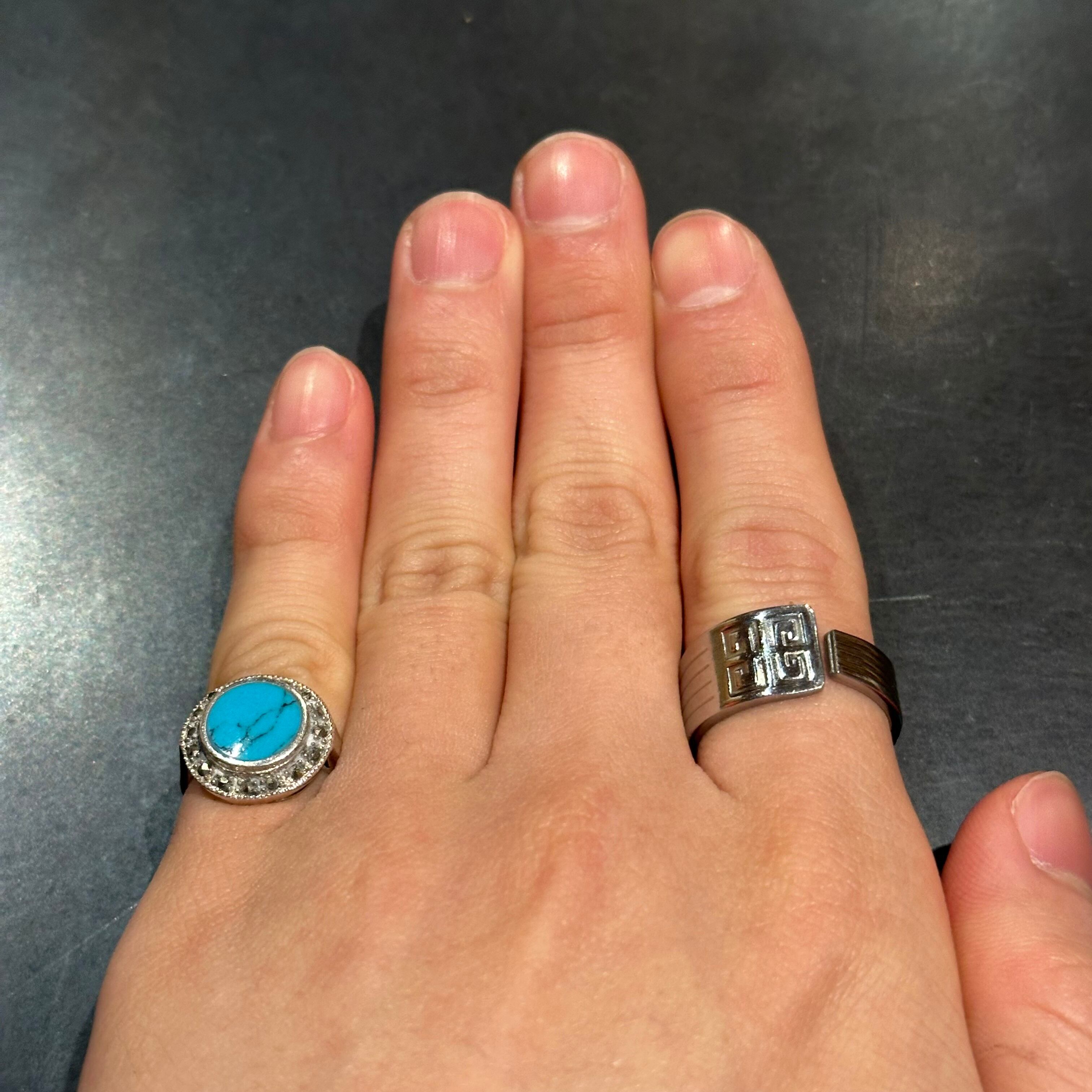 海外で買い付けたターコイズデザインのシルバーリングです。