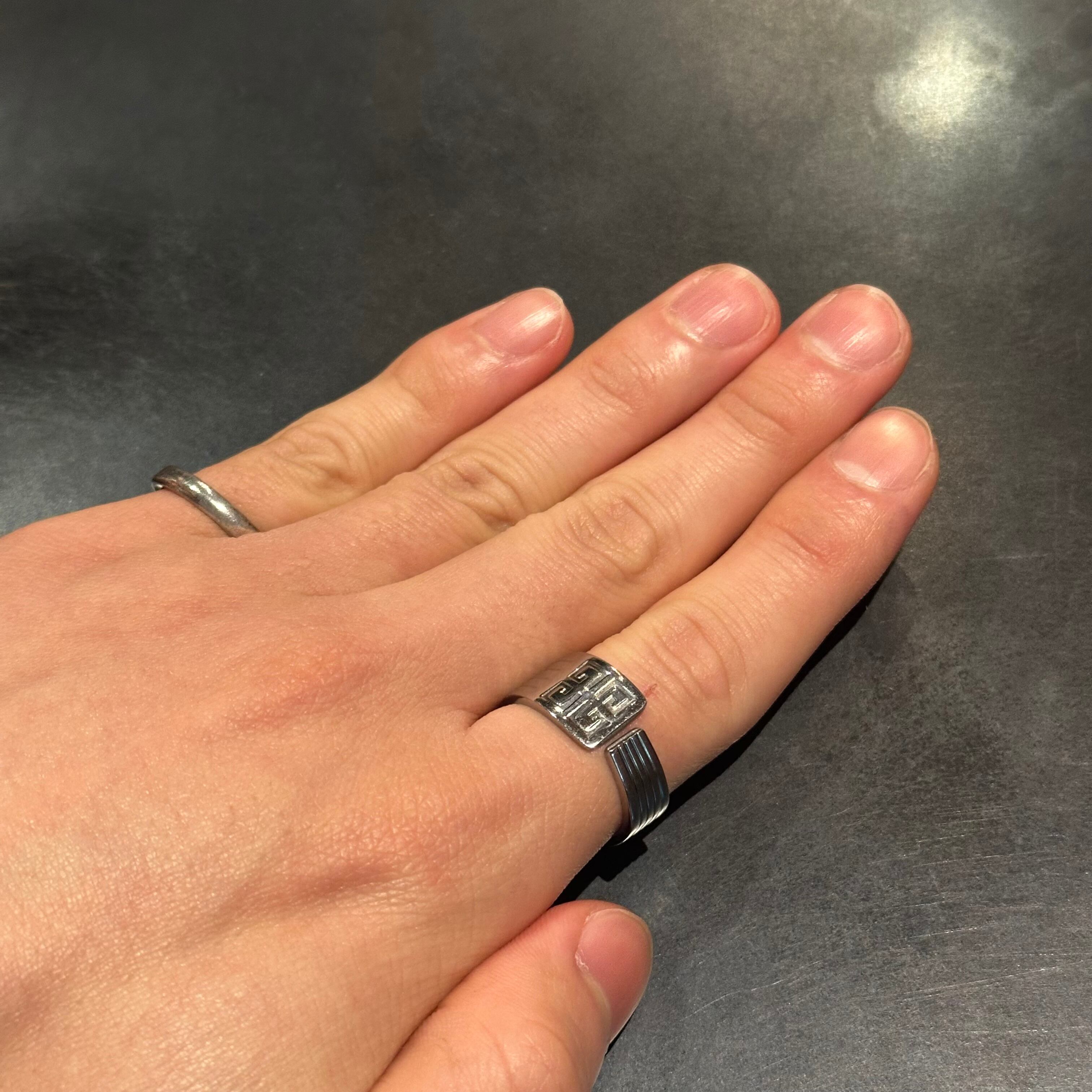 海外で買い付けたカッティングデザインのシルバーリングです。
