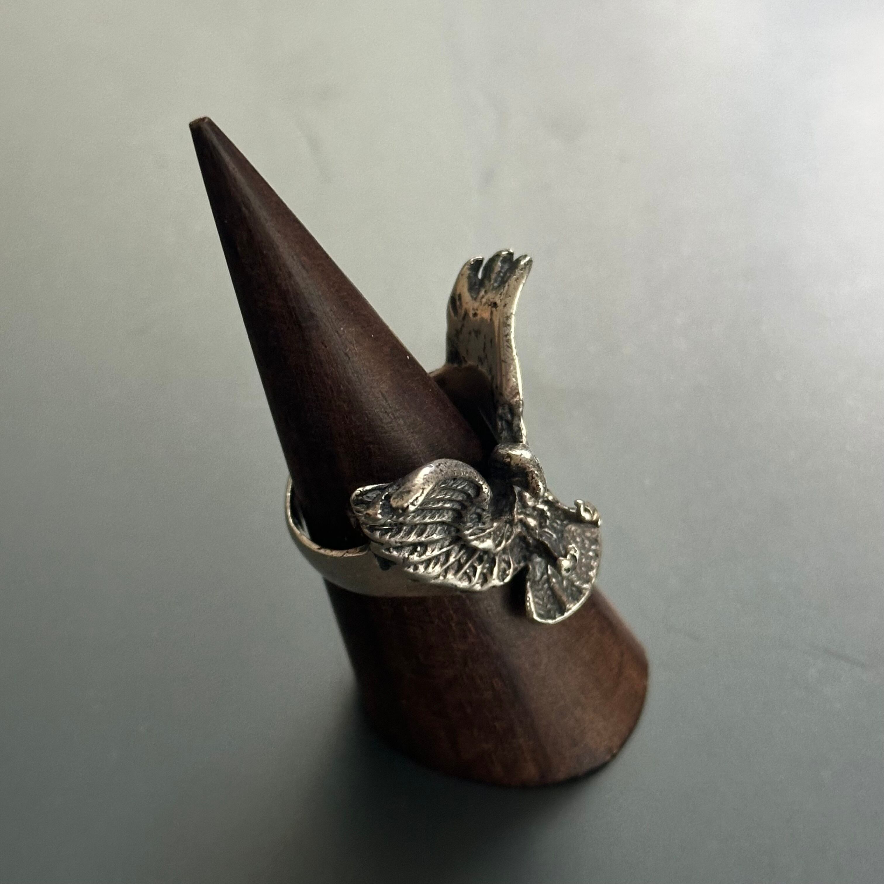 海外で買い付けたフェニックスデザインのシルバーリングです。