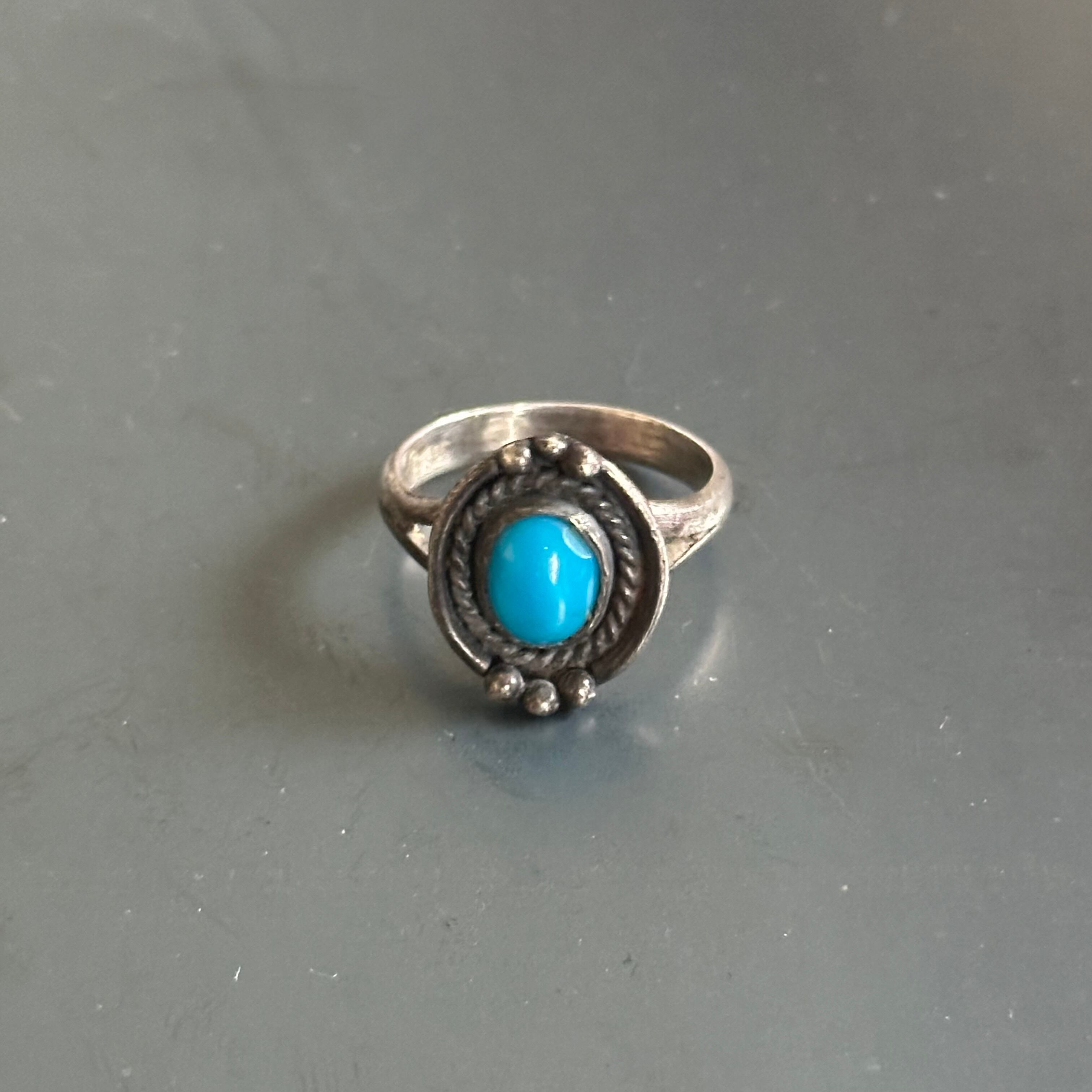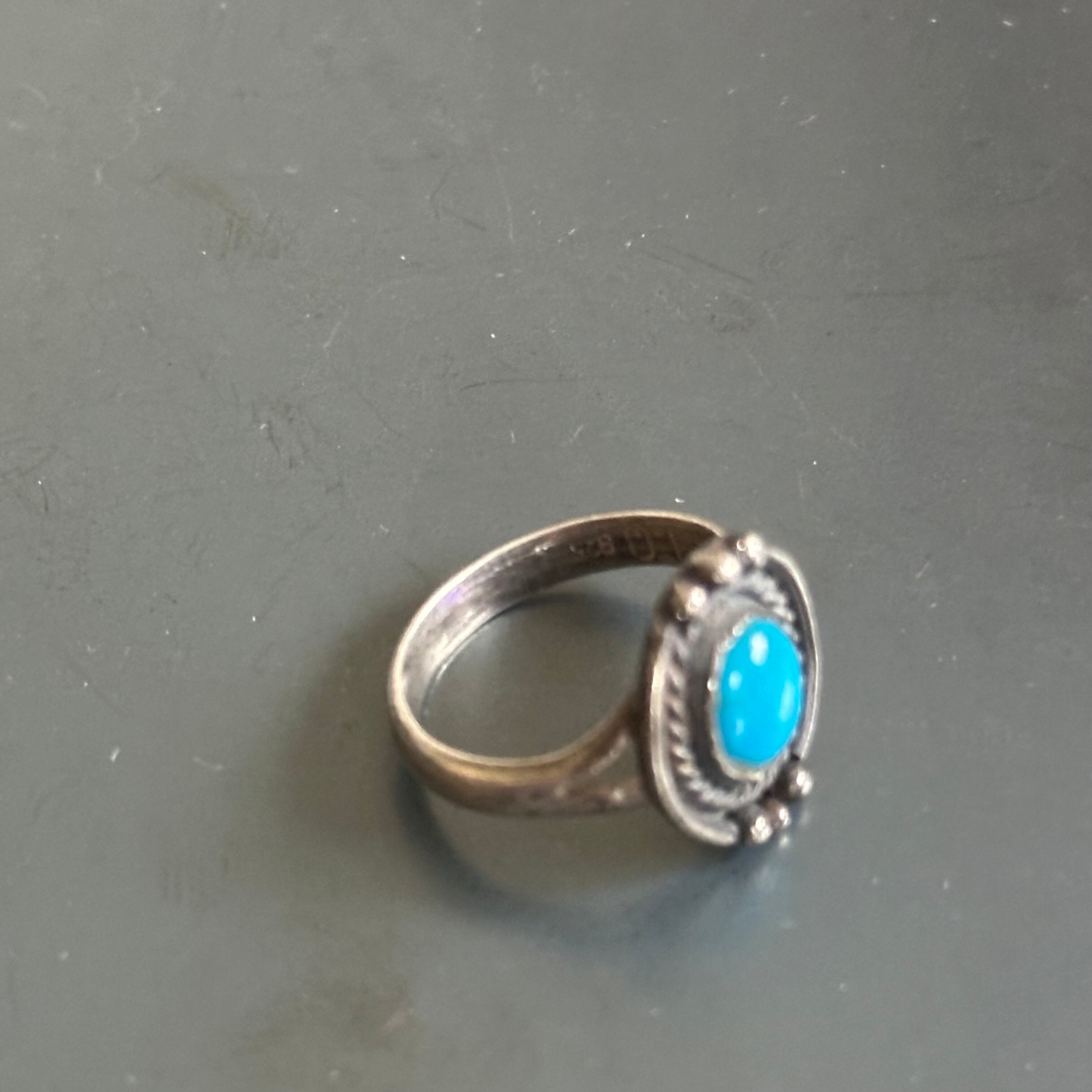 海外で買い付けたターコイズデザインのシルバーリングです。