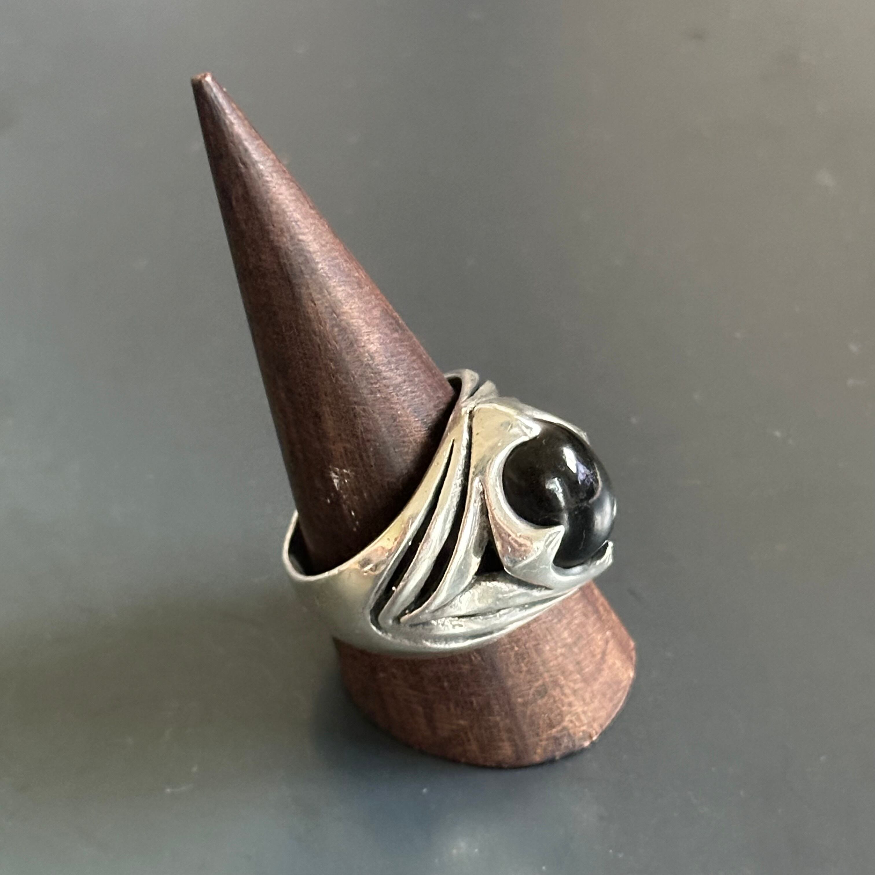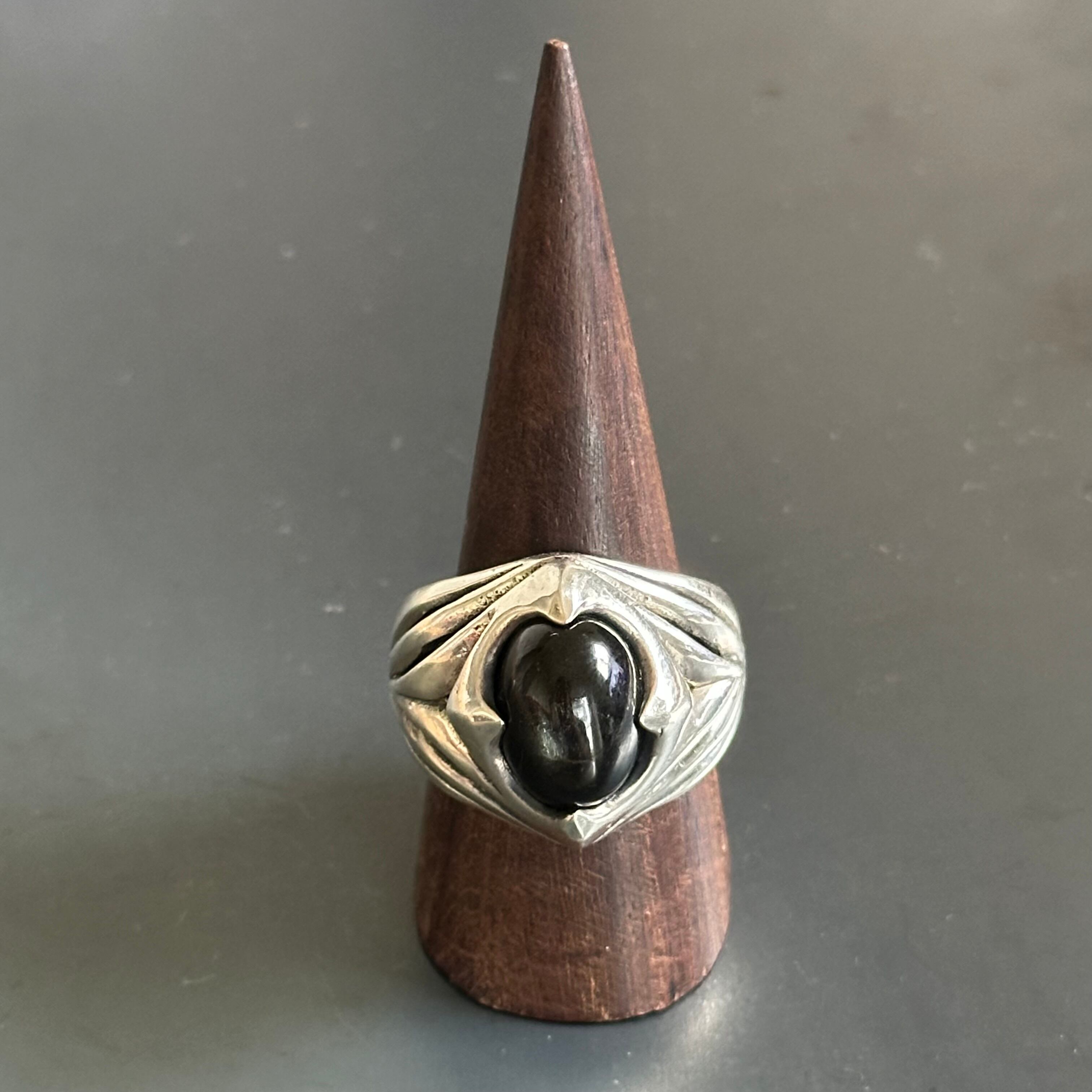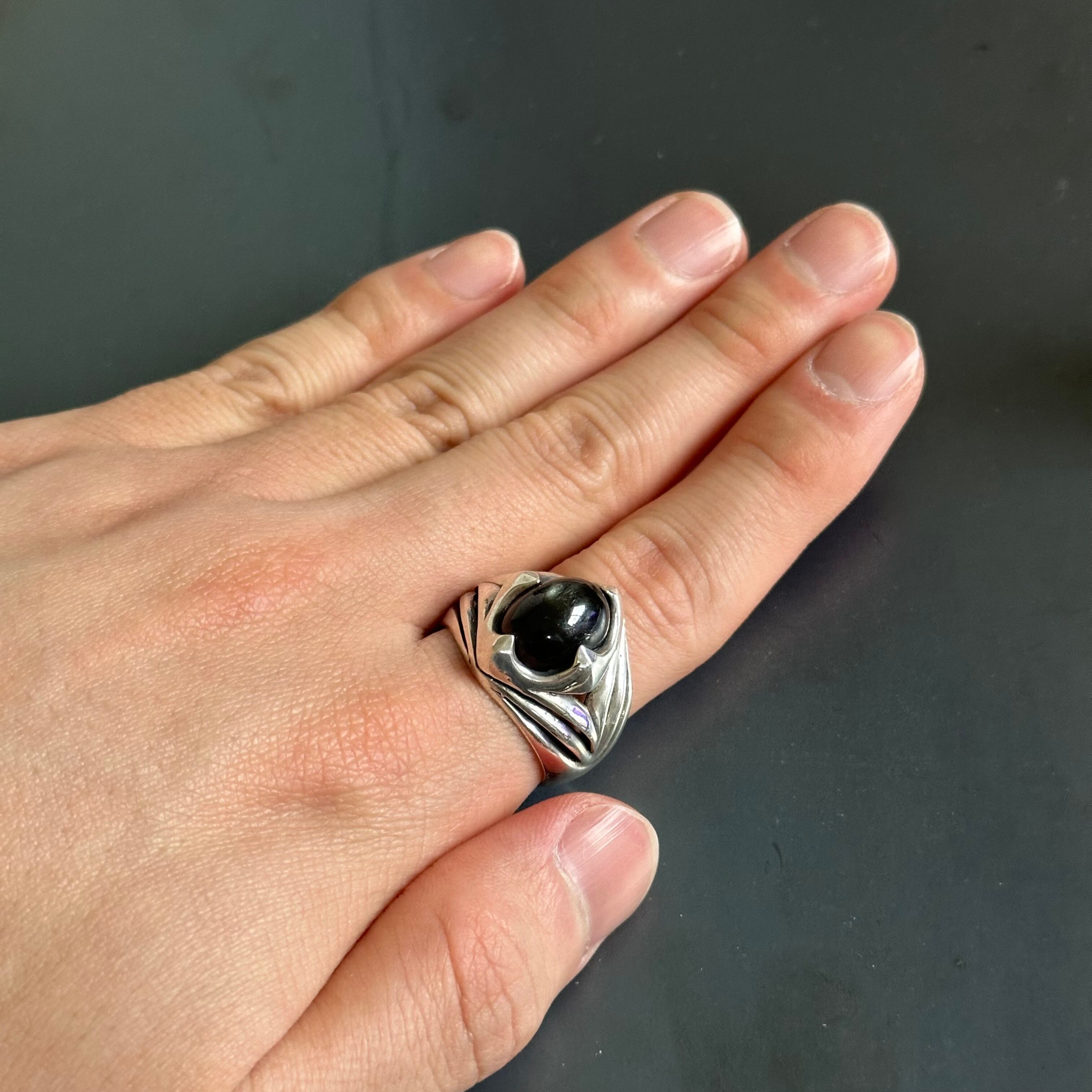 海外で買い付けたオニキスデザインのシルバーリングです。