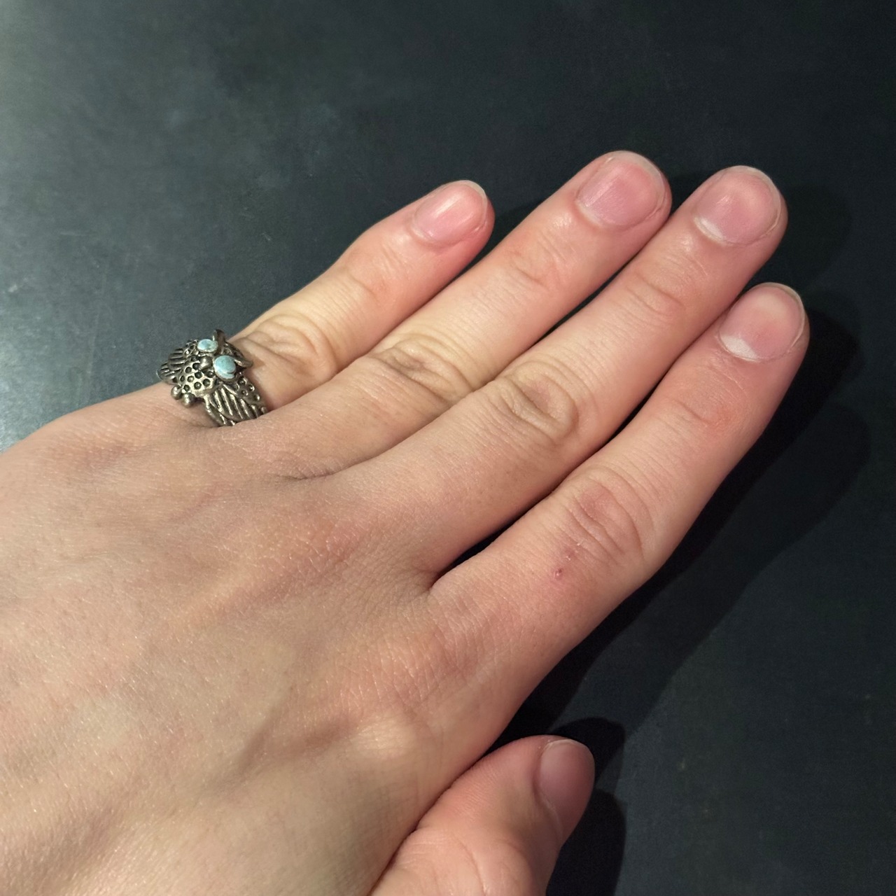 海外で買い付けたフクロウデザインのシルバーリングです。