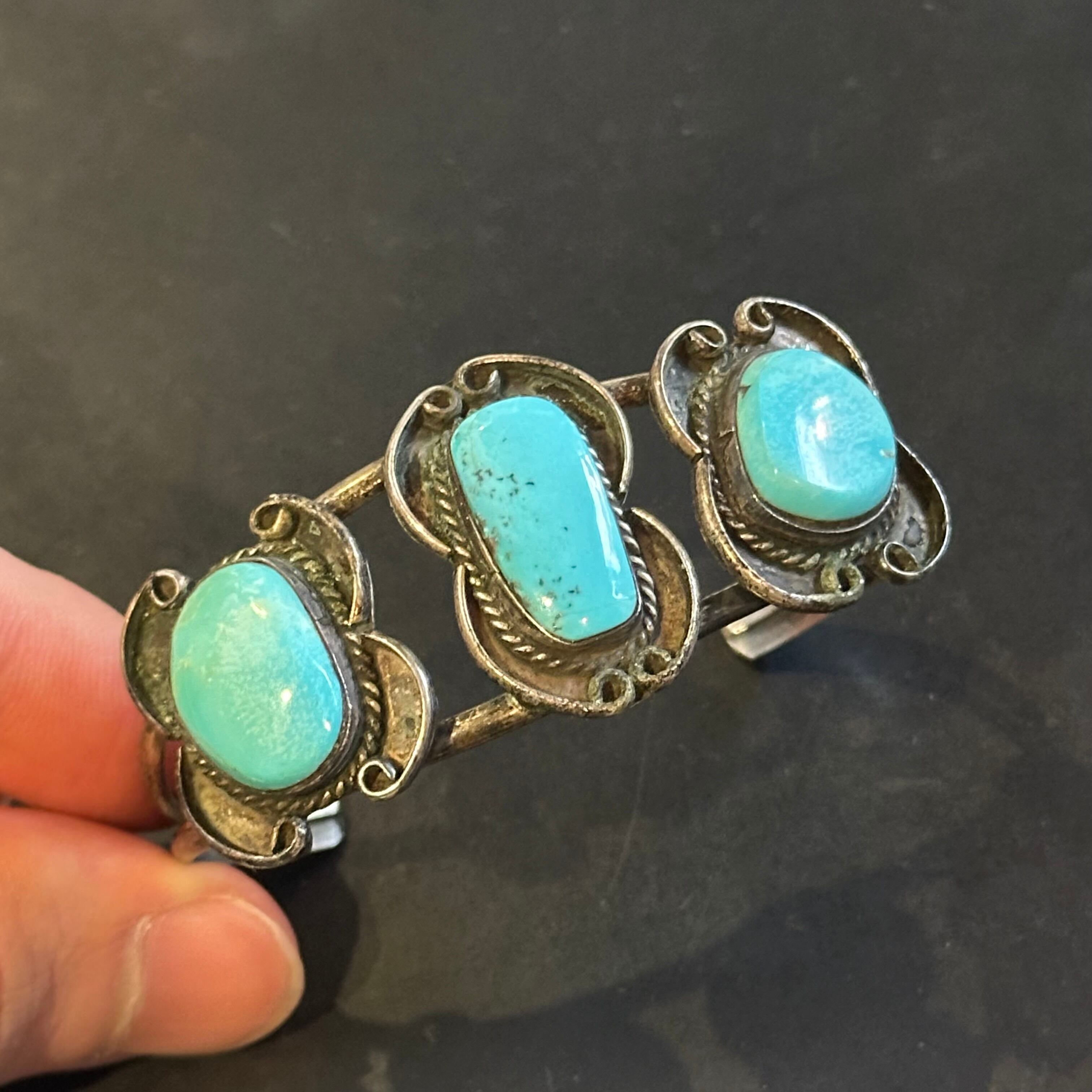 海外で買い付けたターコイズデザインのシルバーバングルです。