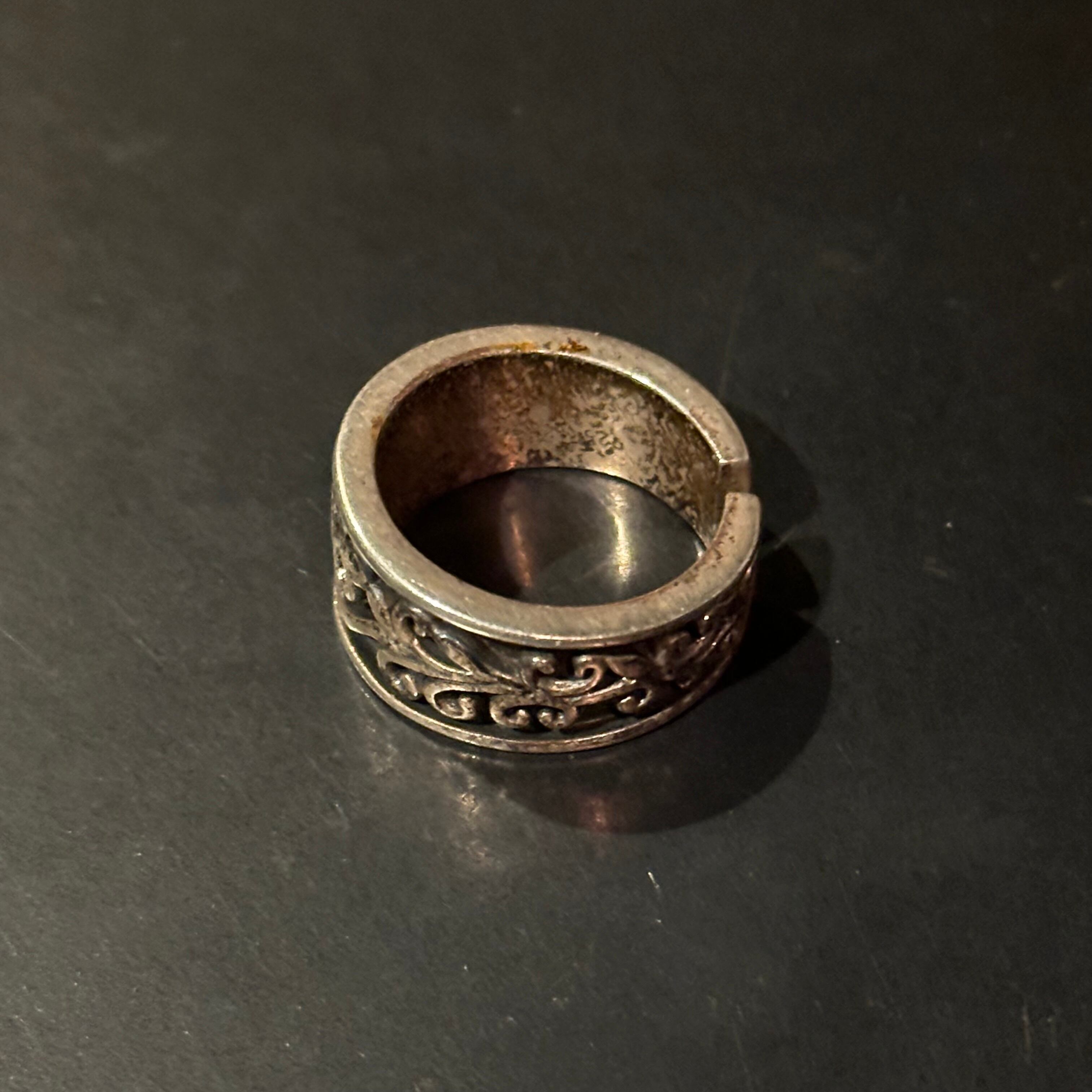 海外で買い付けた彫刻デザインのシルバーリングです。