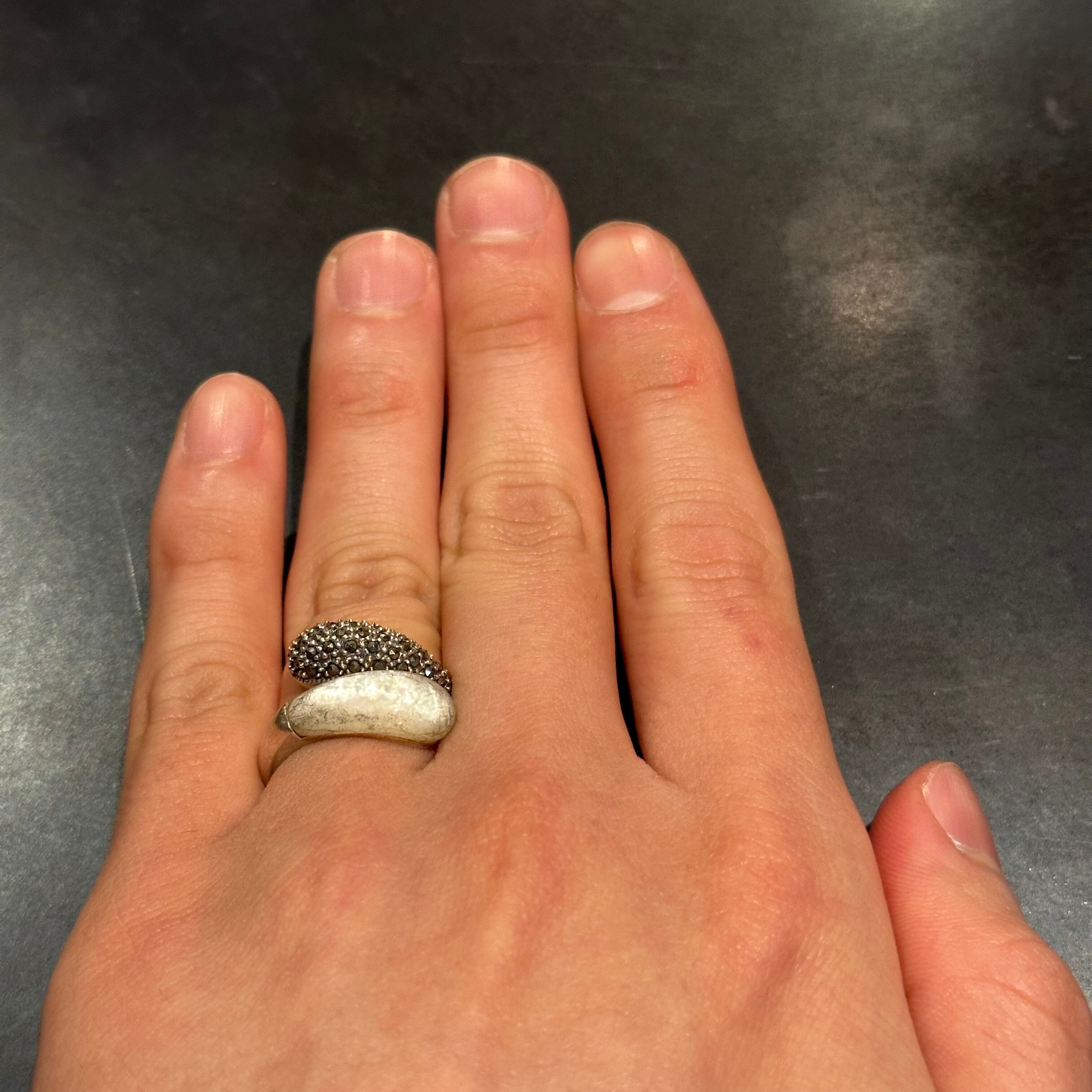海外で買い付けたキラキラストーンデザインのシルバーツイストリングです。