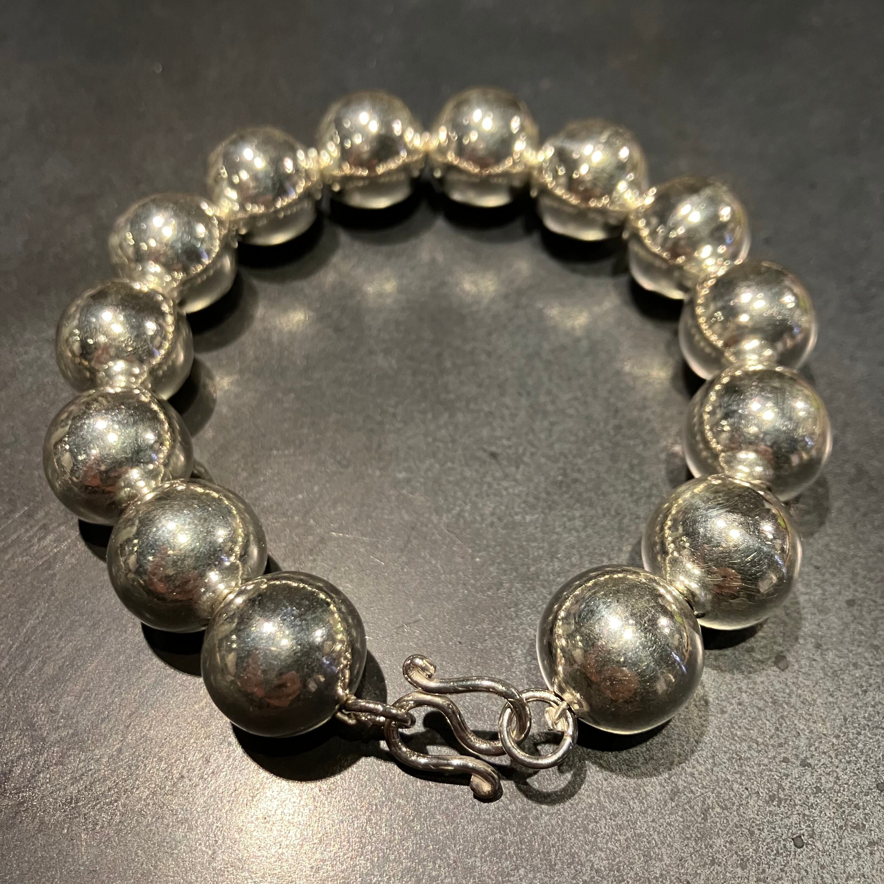 かなり大振りでインパクトのあるシルバーパールブレスレットです。