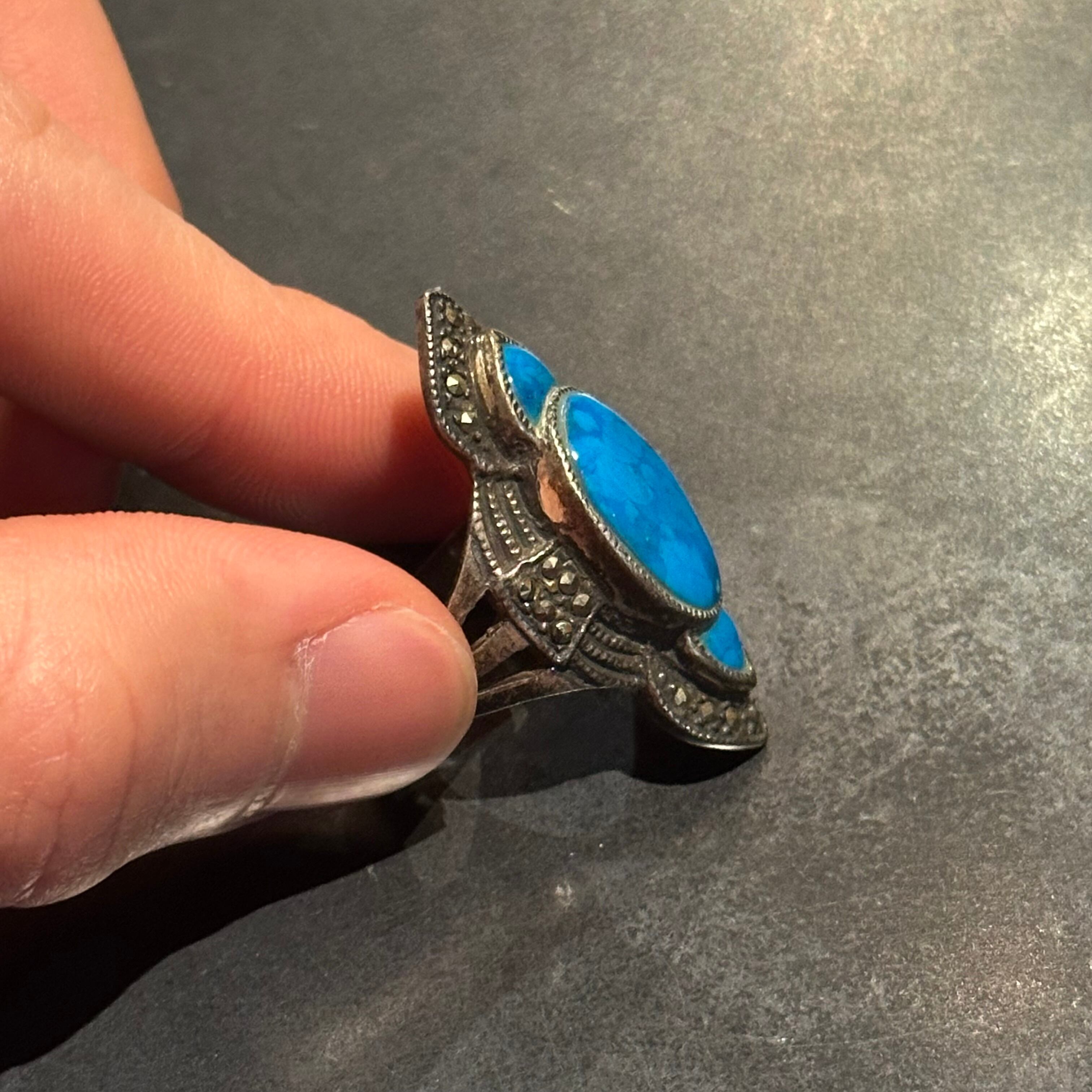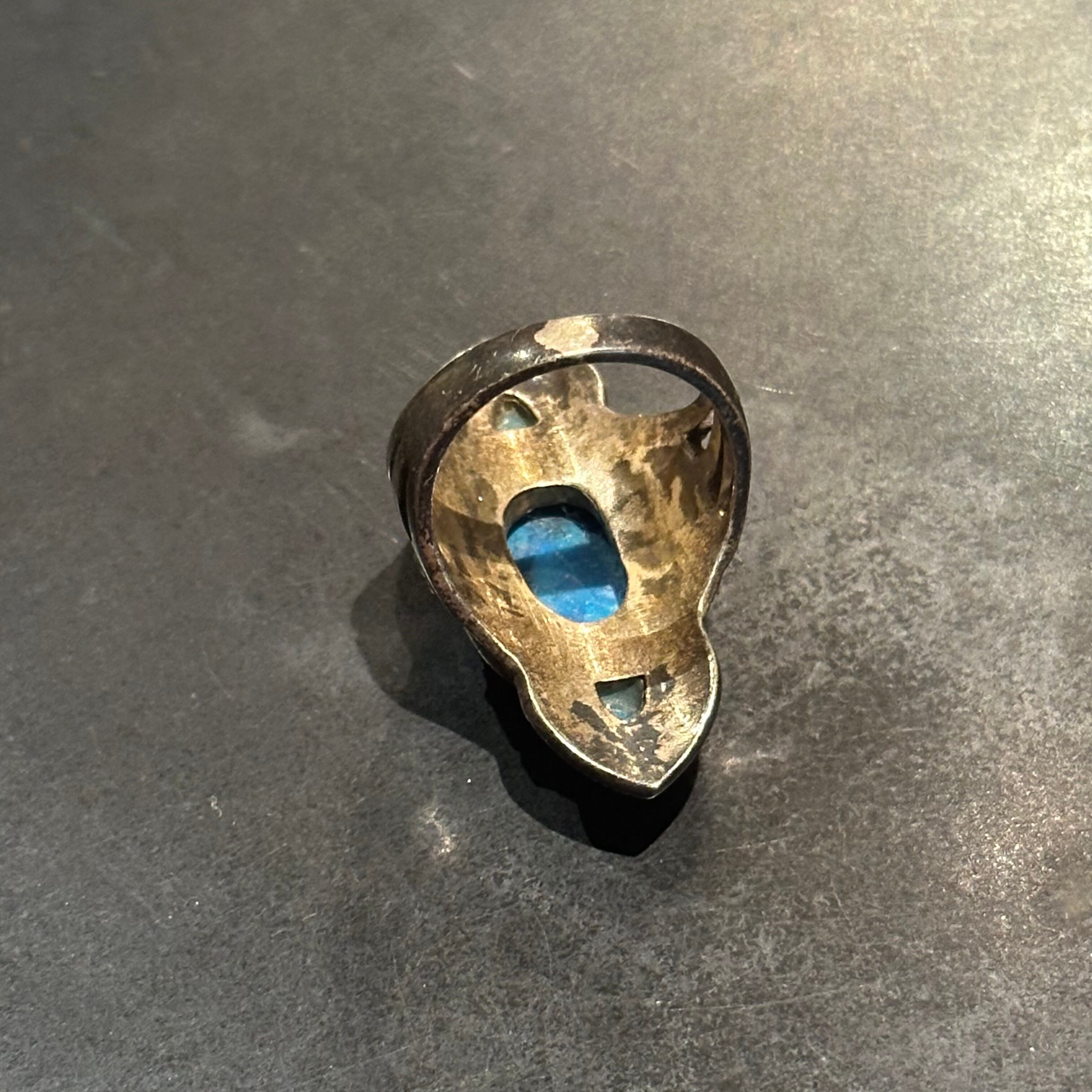 海外で買い付けたネイティブデザインのブルーストーンシルバーリングです。