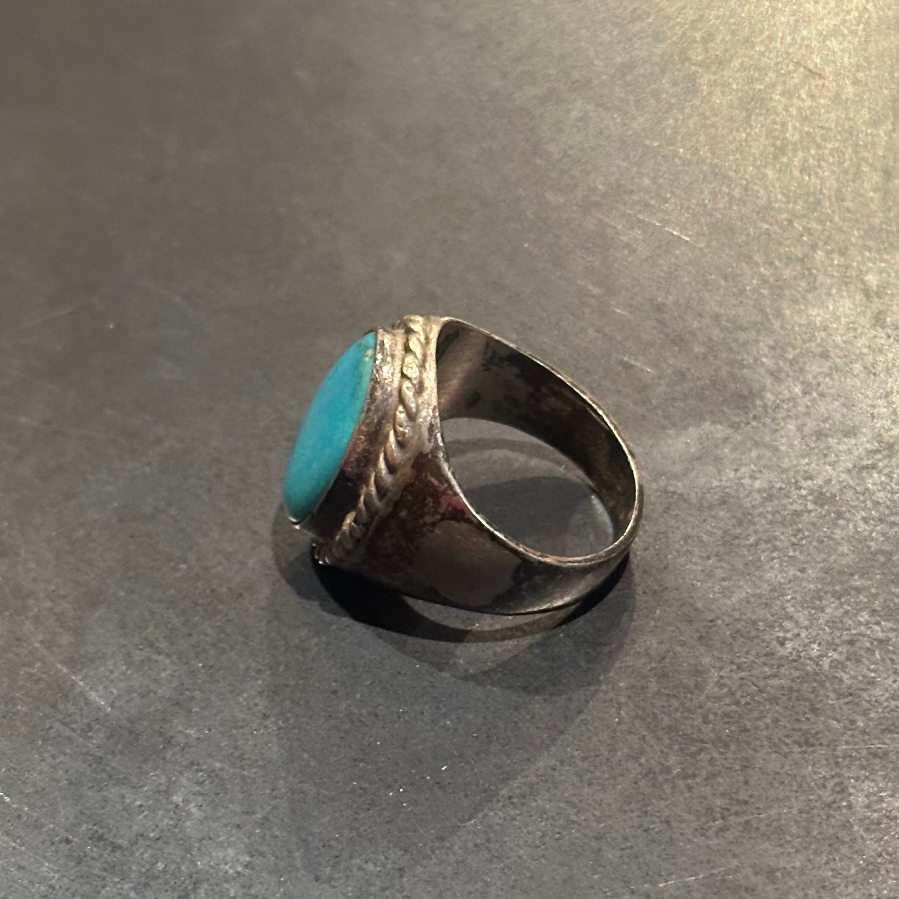海外で買い付けたターコイズデザインのシルバーリングです。