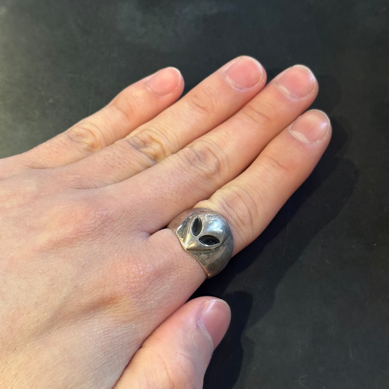 海外で買い付けたエイリアンデザインのシルバーリングです。