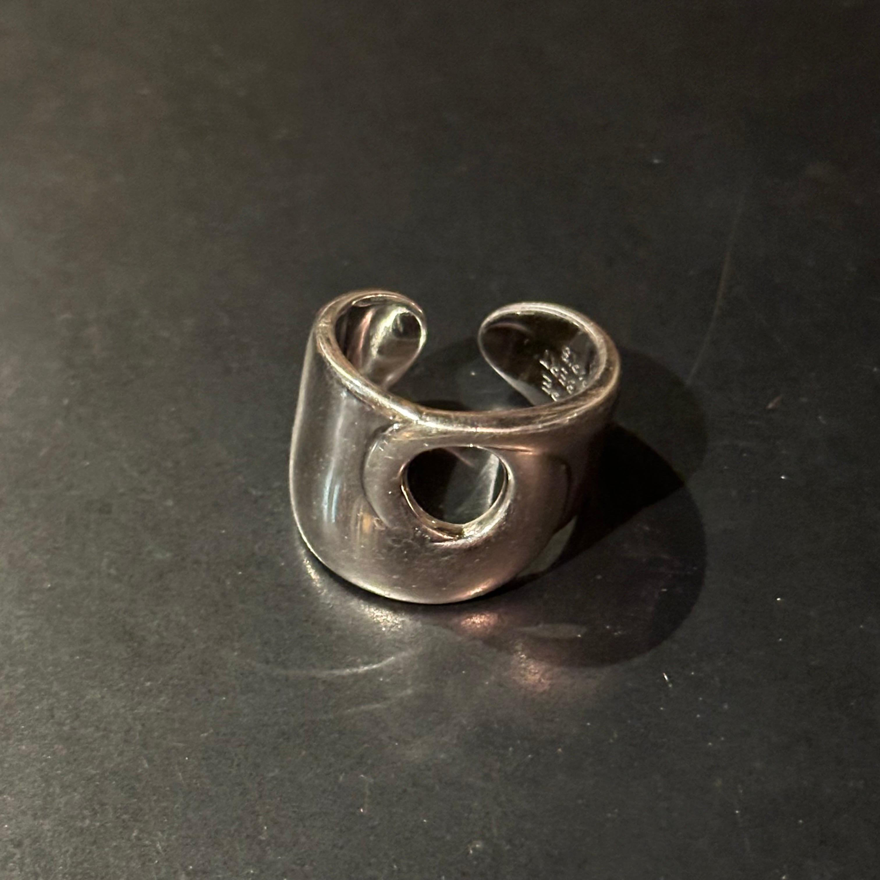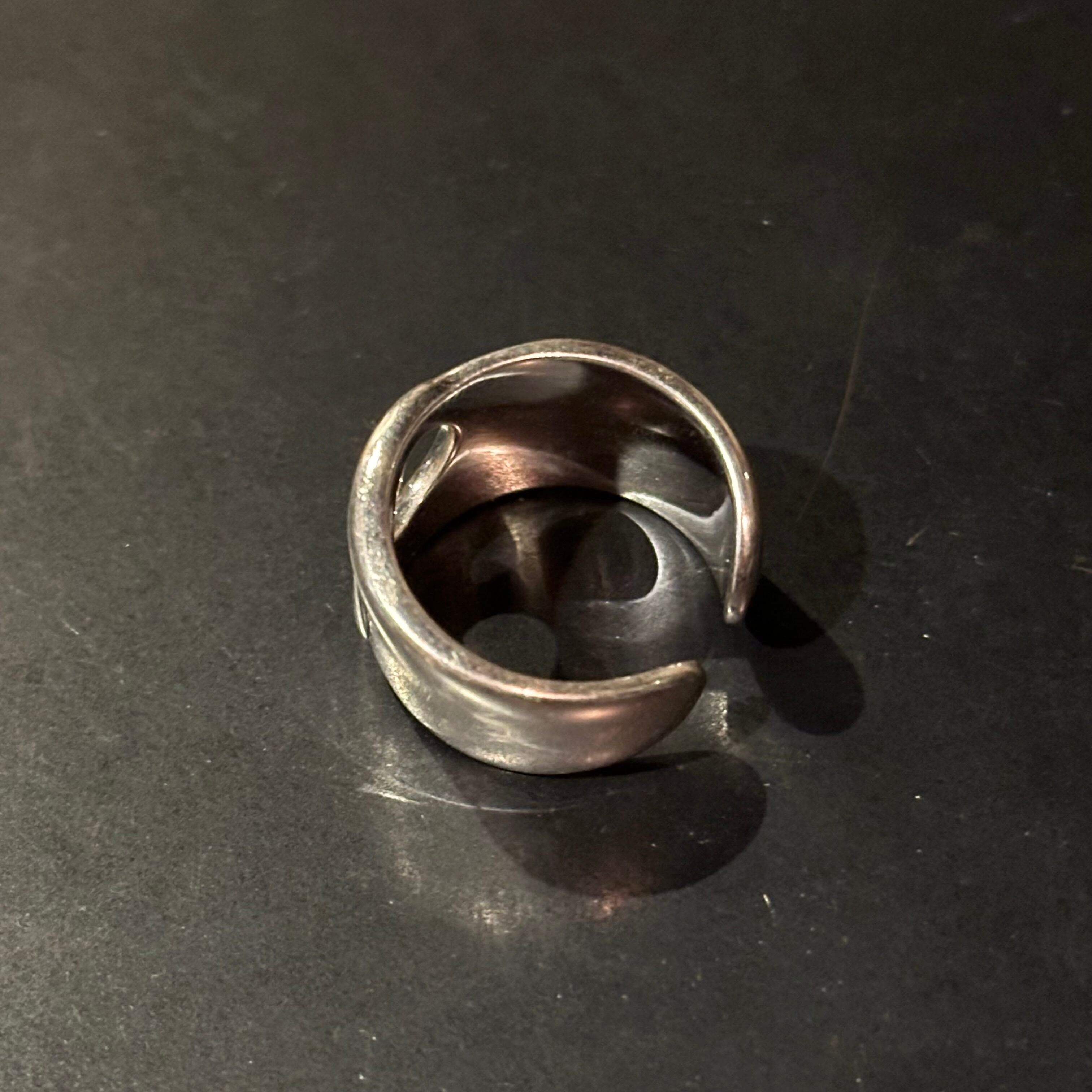 海外で買い付けたサークルカッティングデザインのシルバーリングです。
