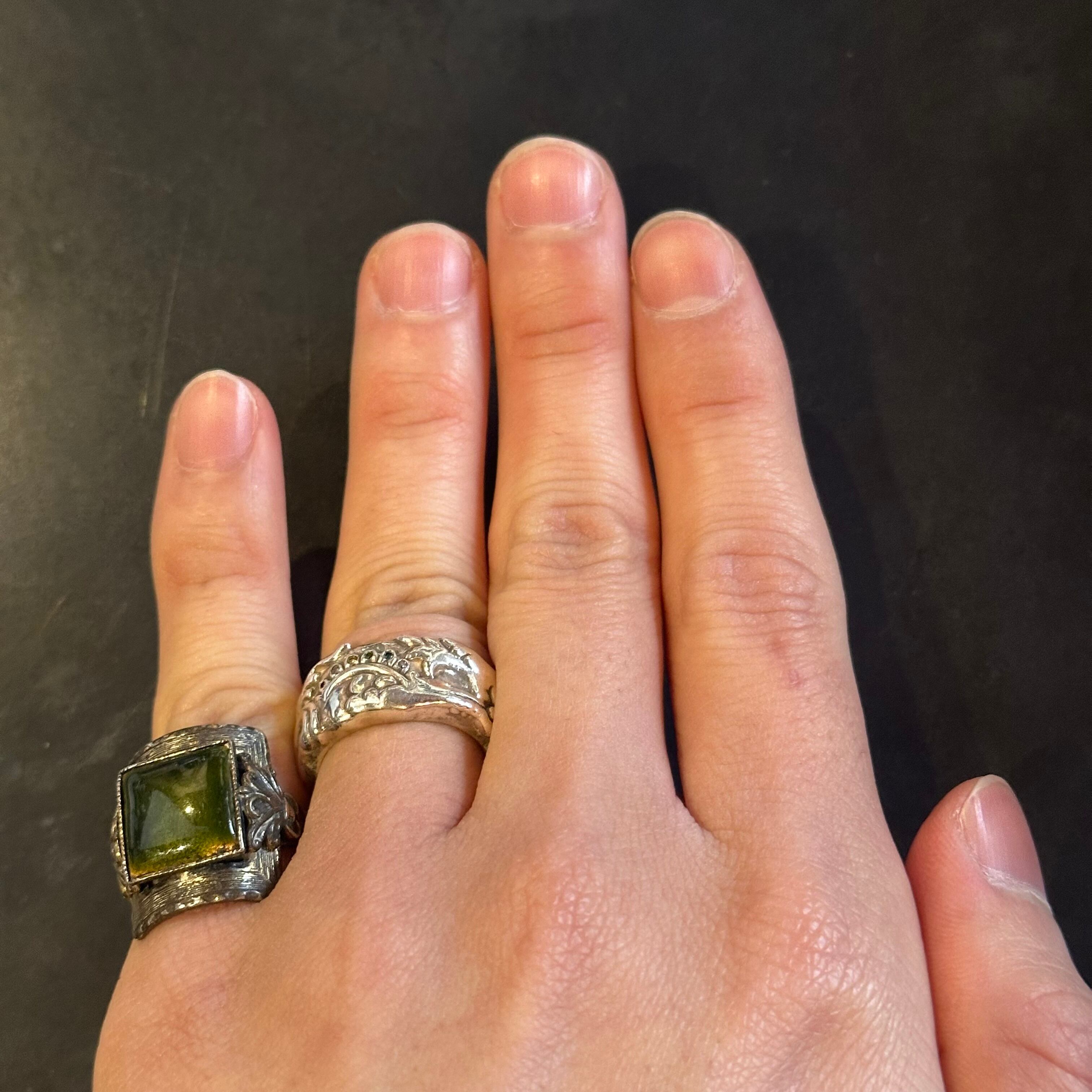 海外で買い付けた深緑ストーンデザインのシルバーリングです。