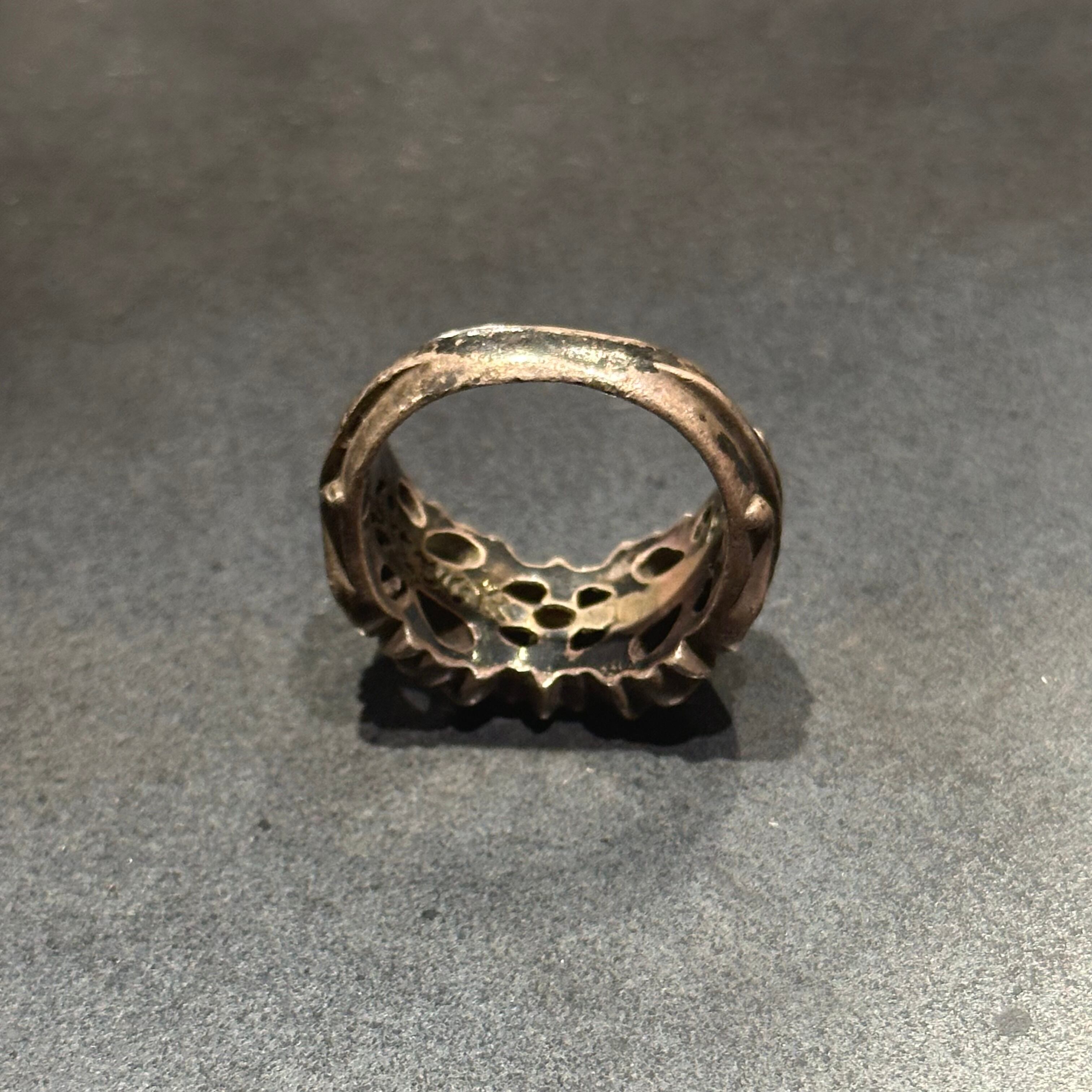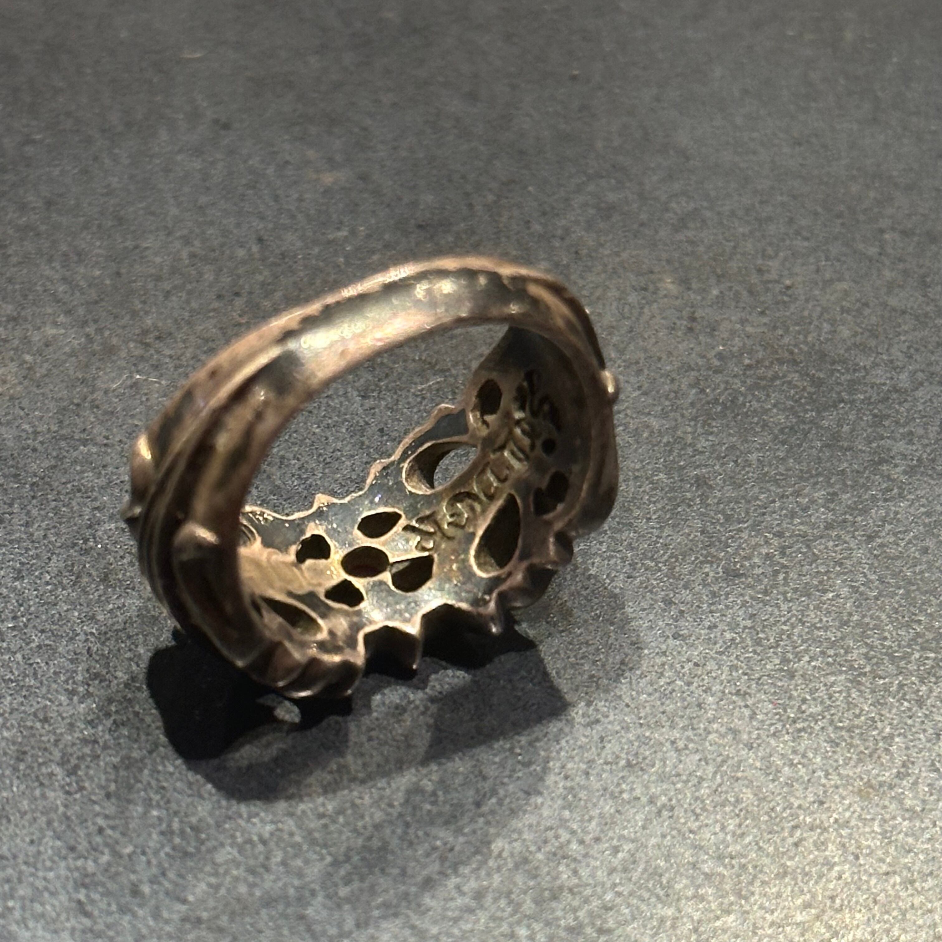 海外で買い付けたクロスデザインのレッドストーンシルバーリングです。
