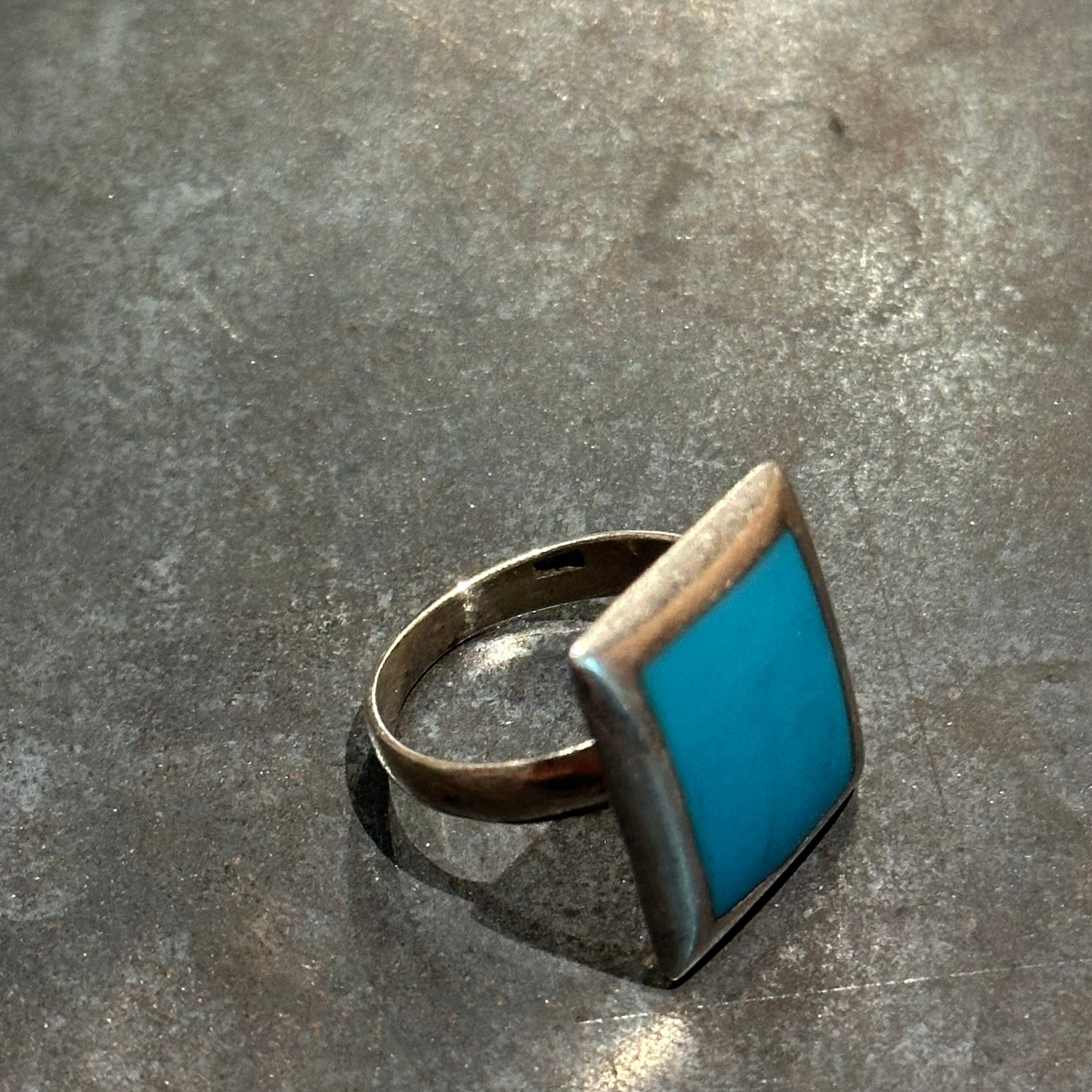 海外で買い付けたターコイズデザインのシルバーリングです。
