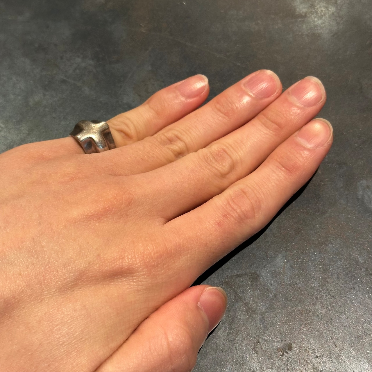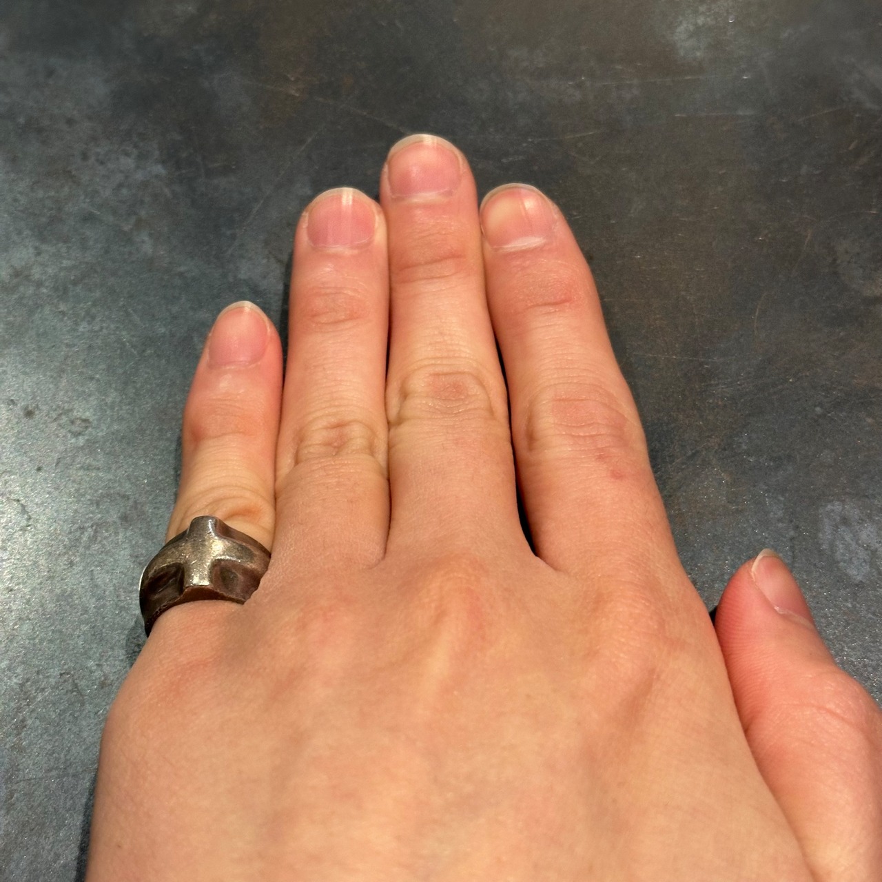 海外で買い付けたクロスデザインのシルバーリングです。