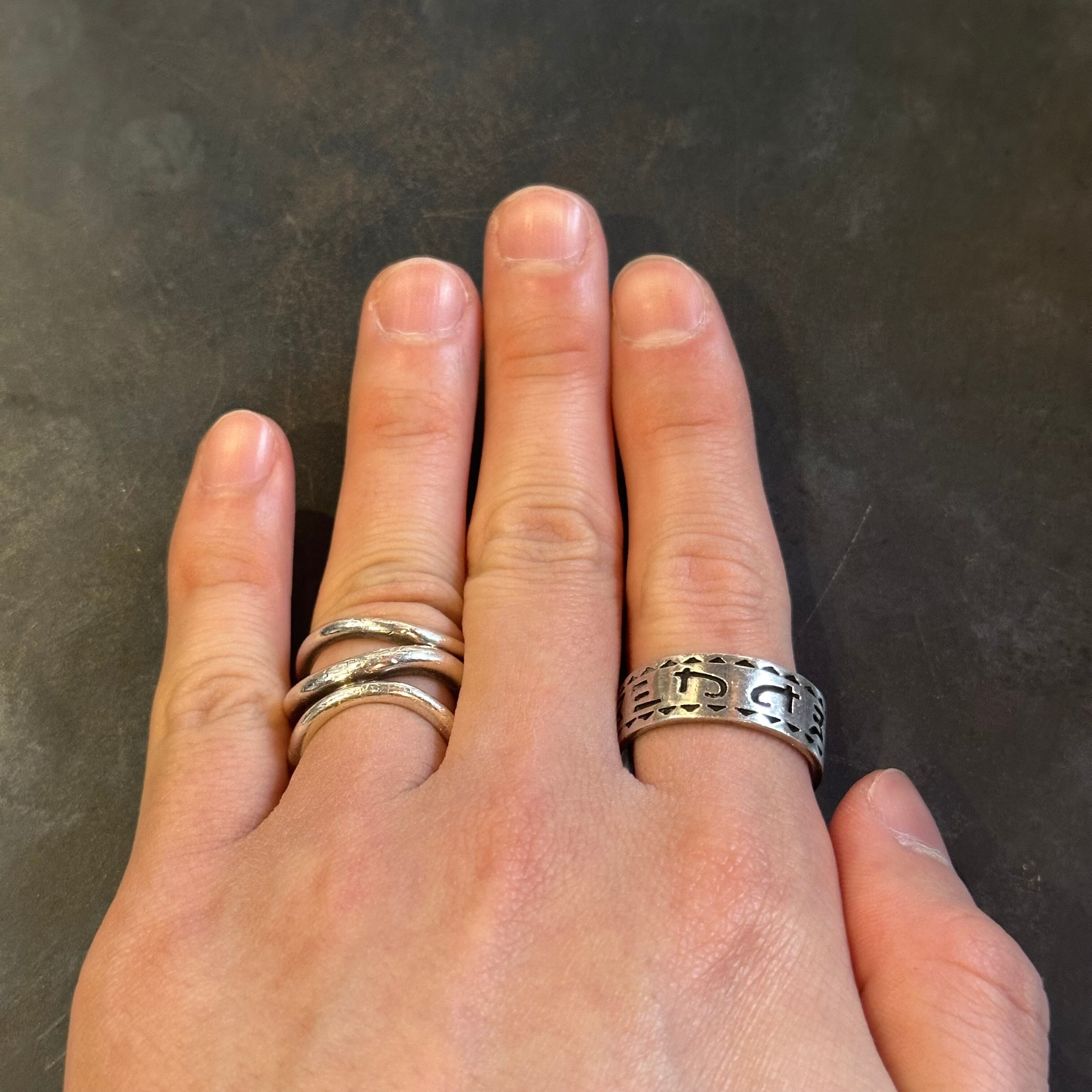 海外で買い付けたカッティングデザインのシルバーリングです。