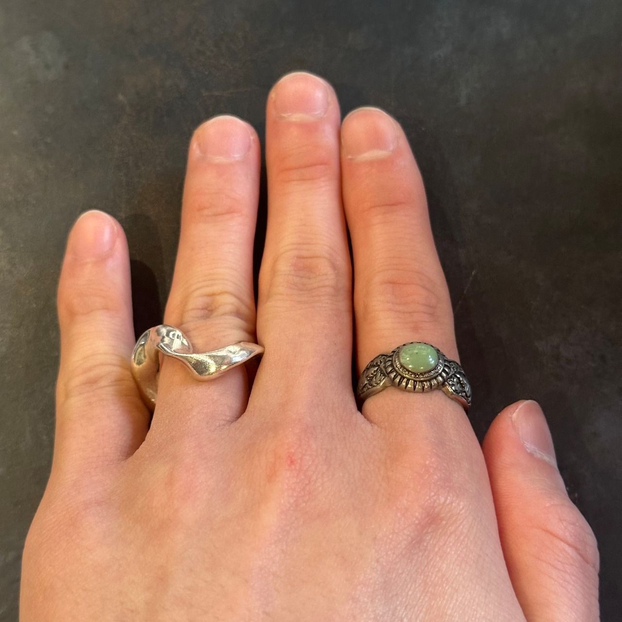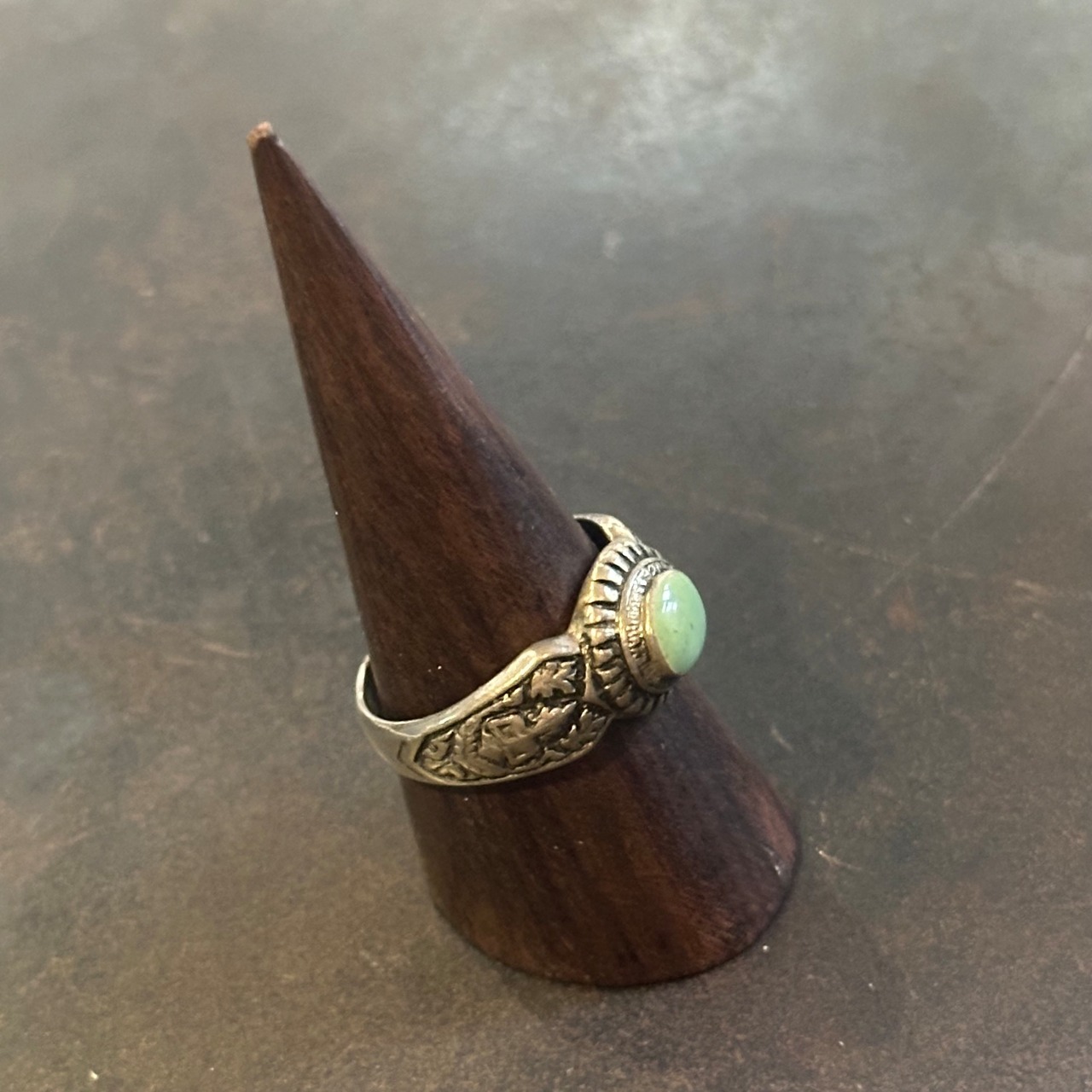 海外で買い付けたグリーンストーンデザインのシルバーリングです。
