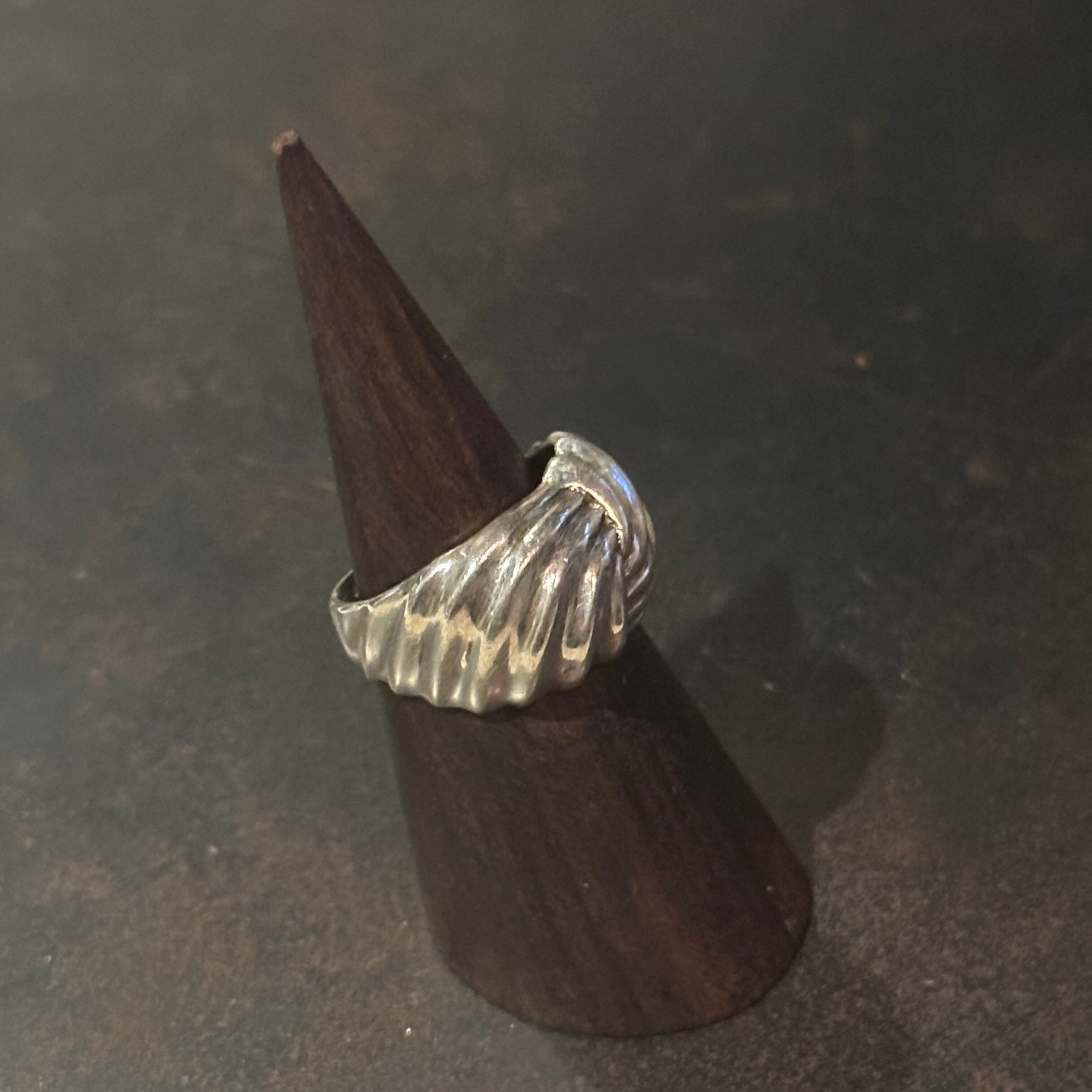 海外で買い付けた渦巻きデザインのシルバーリングです。