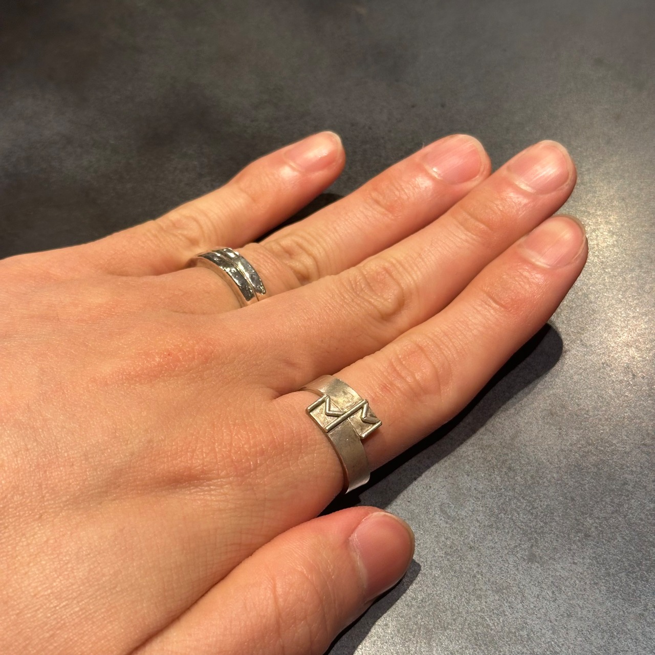 海外で買い付けたMカッティングデザインのシルバーリングです。