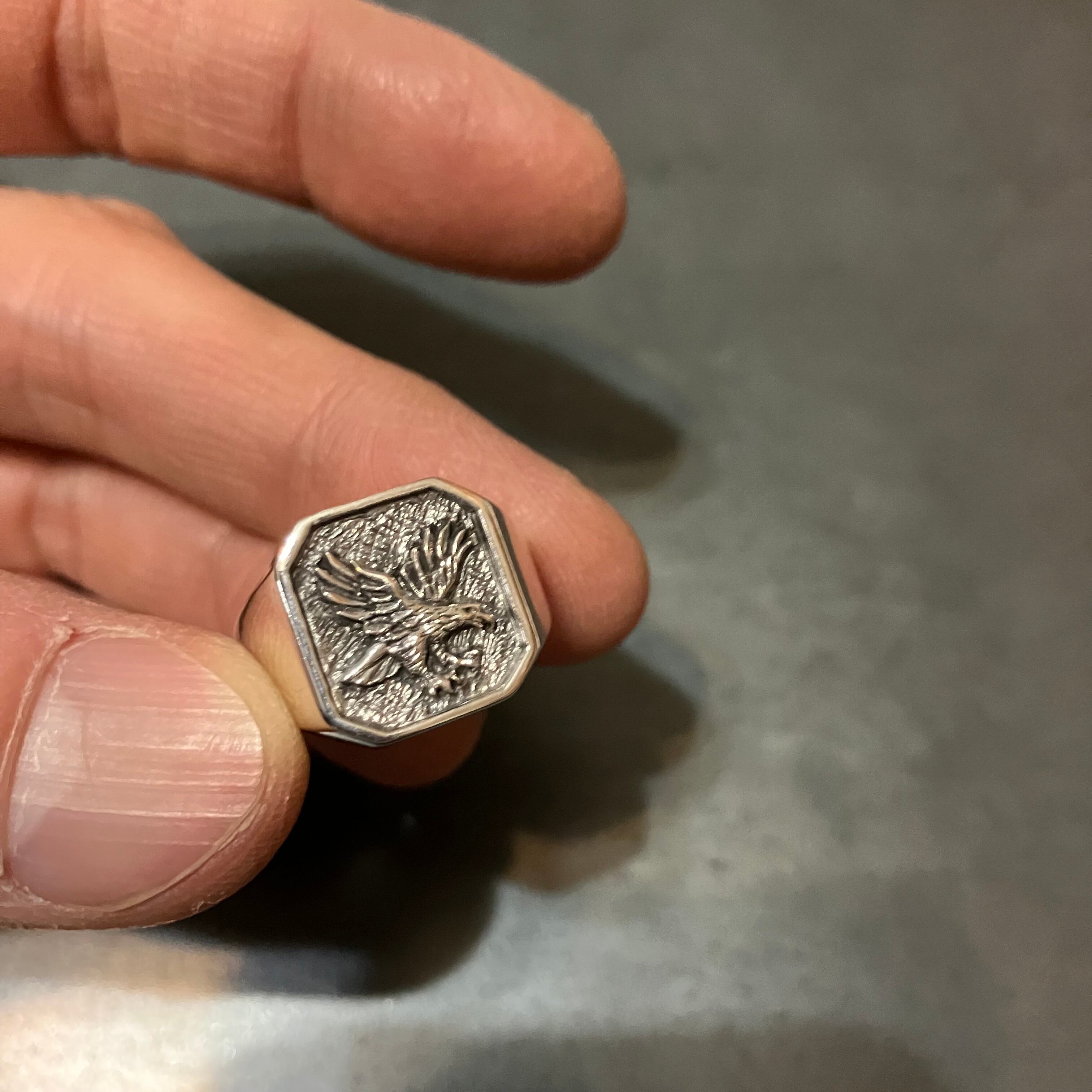 海外で買い付けたイーグルデザインのシルバーリングです。