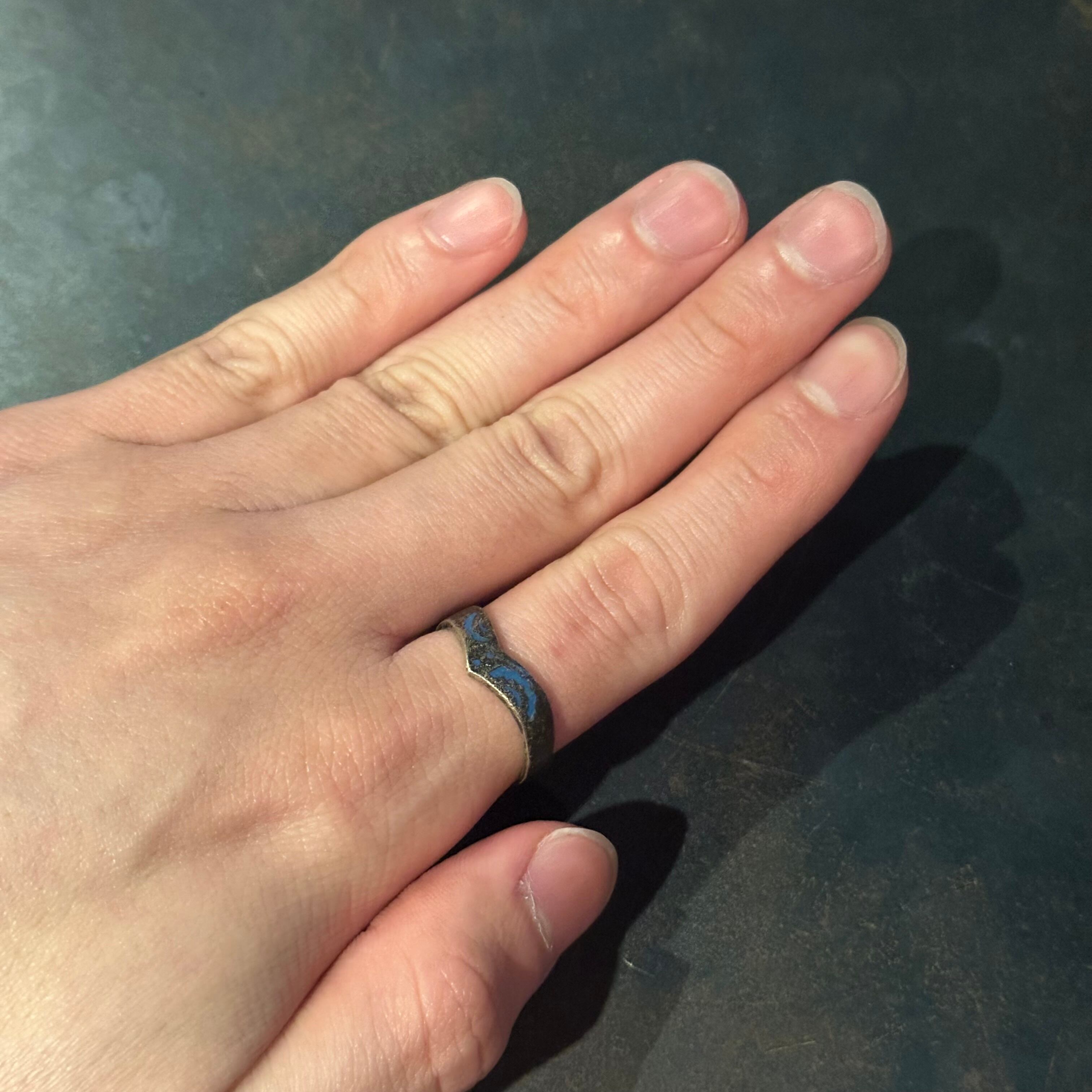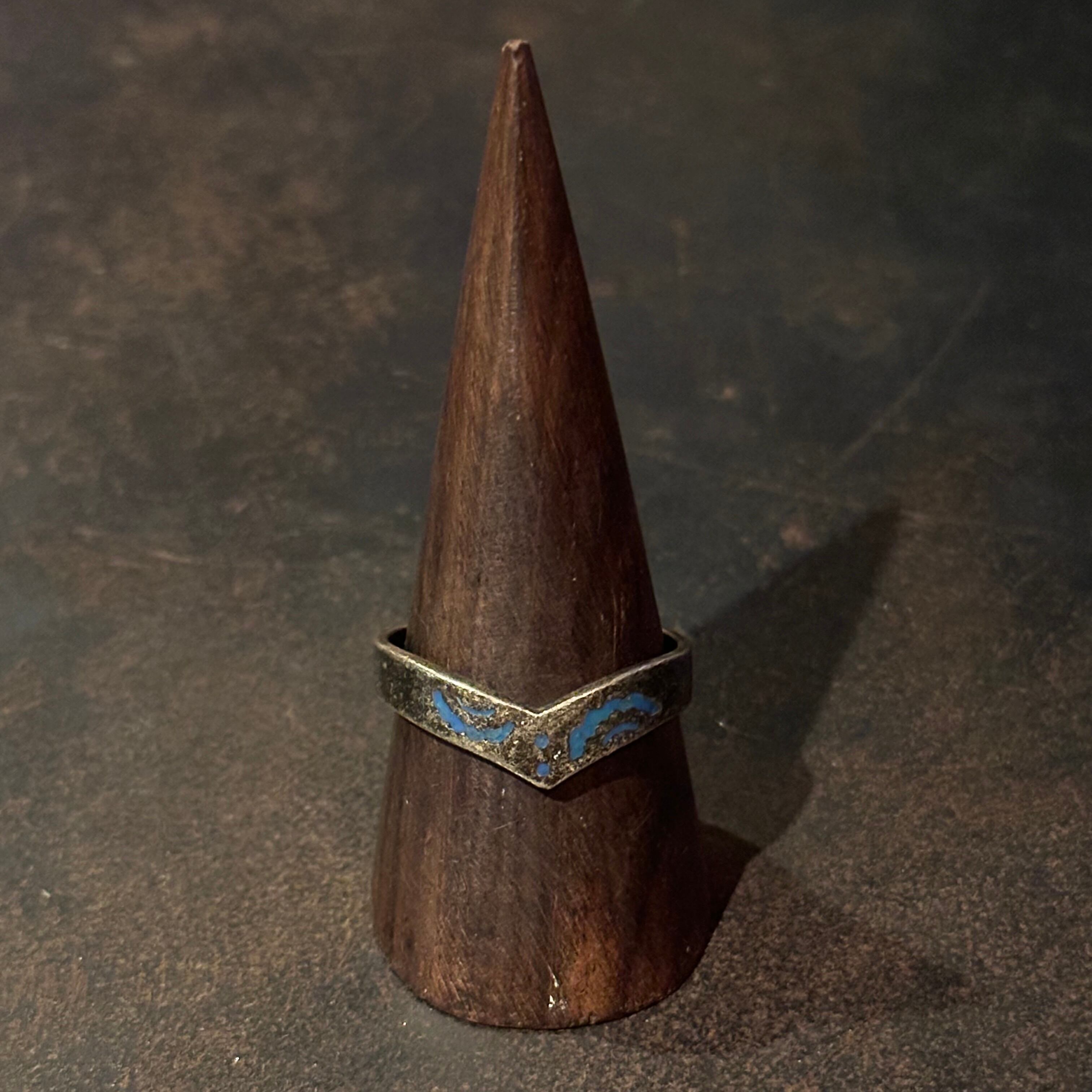 海外で買い付けたVカッティングデザインのシルバーリングです。