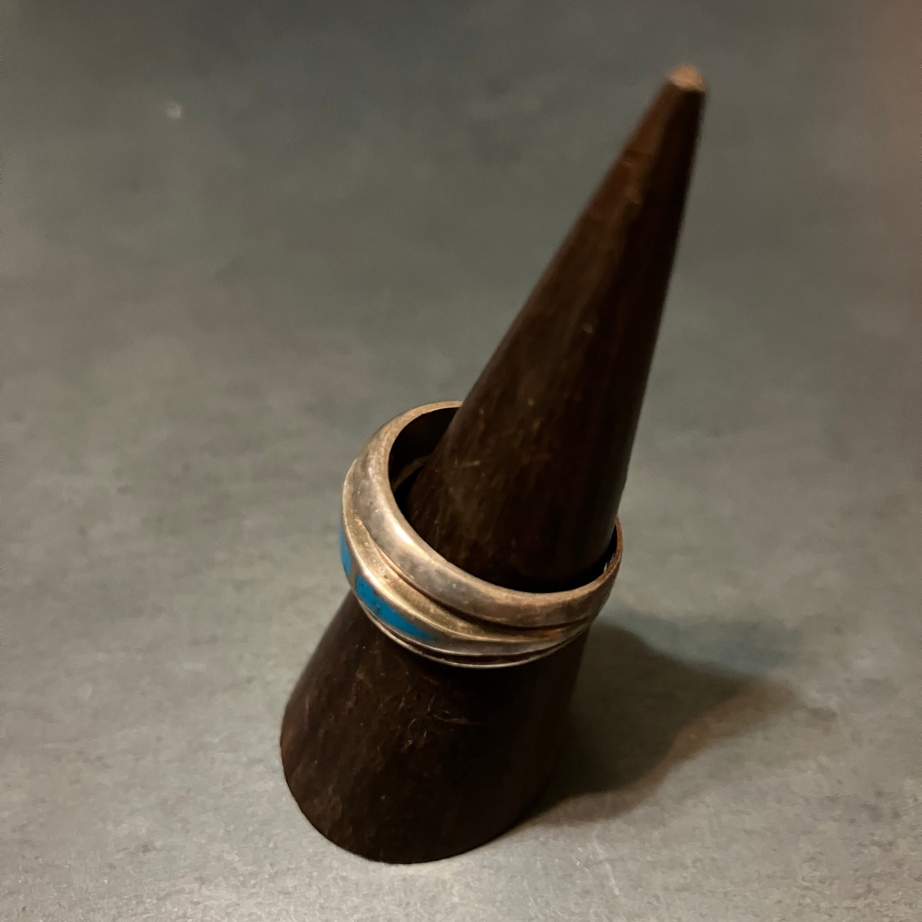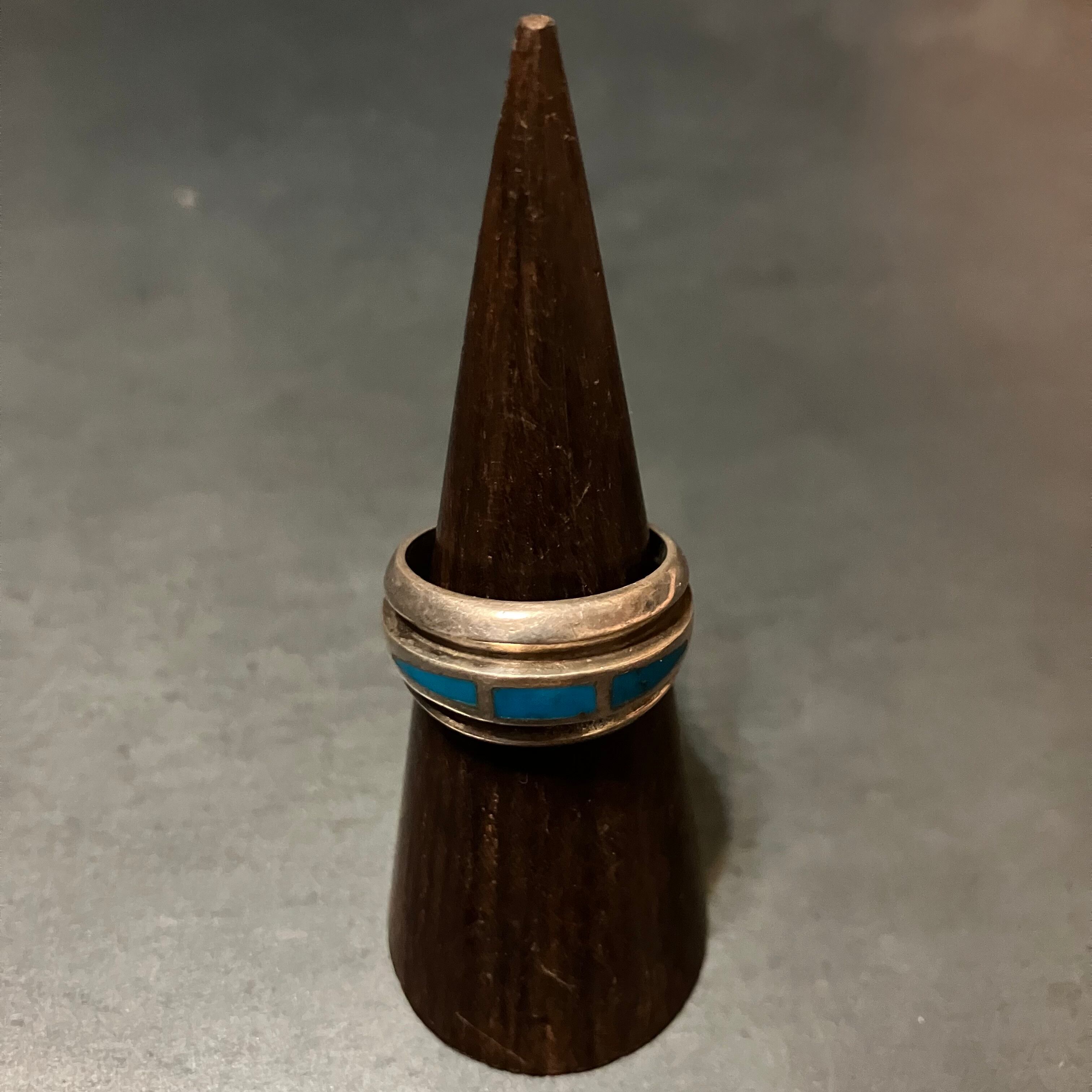 海外で買い付けたターコイズデザインのシルバーリングです。