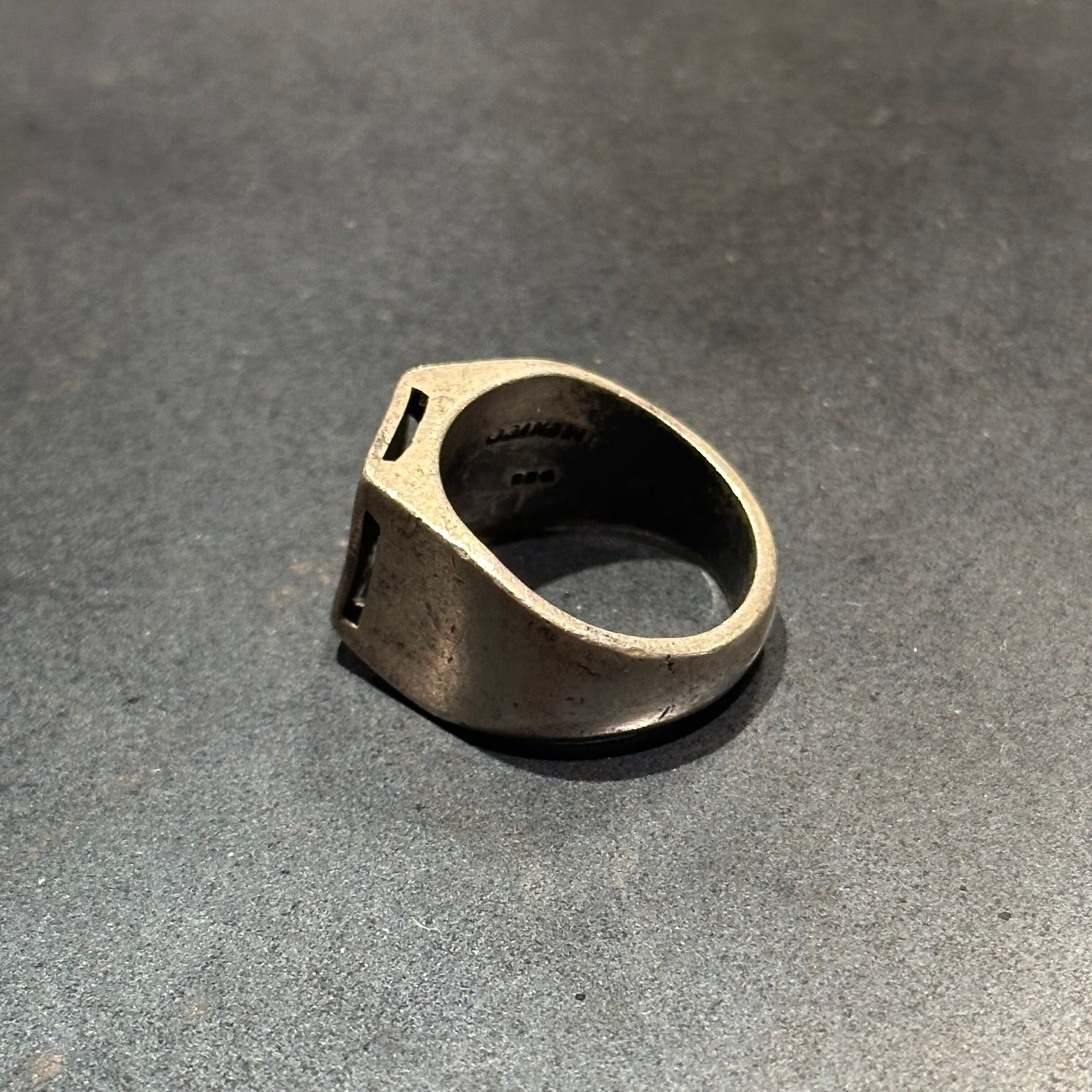 海外で買い付けたカッティングデザインのシルバースクエアリングです。