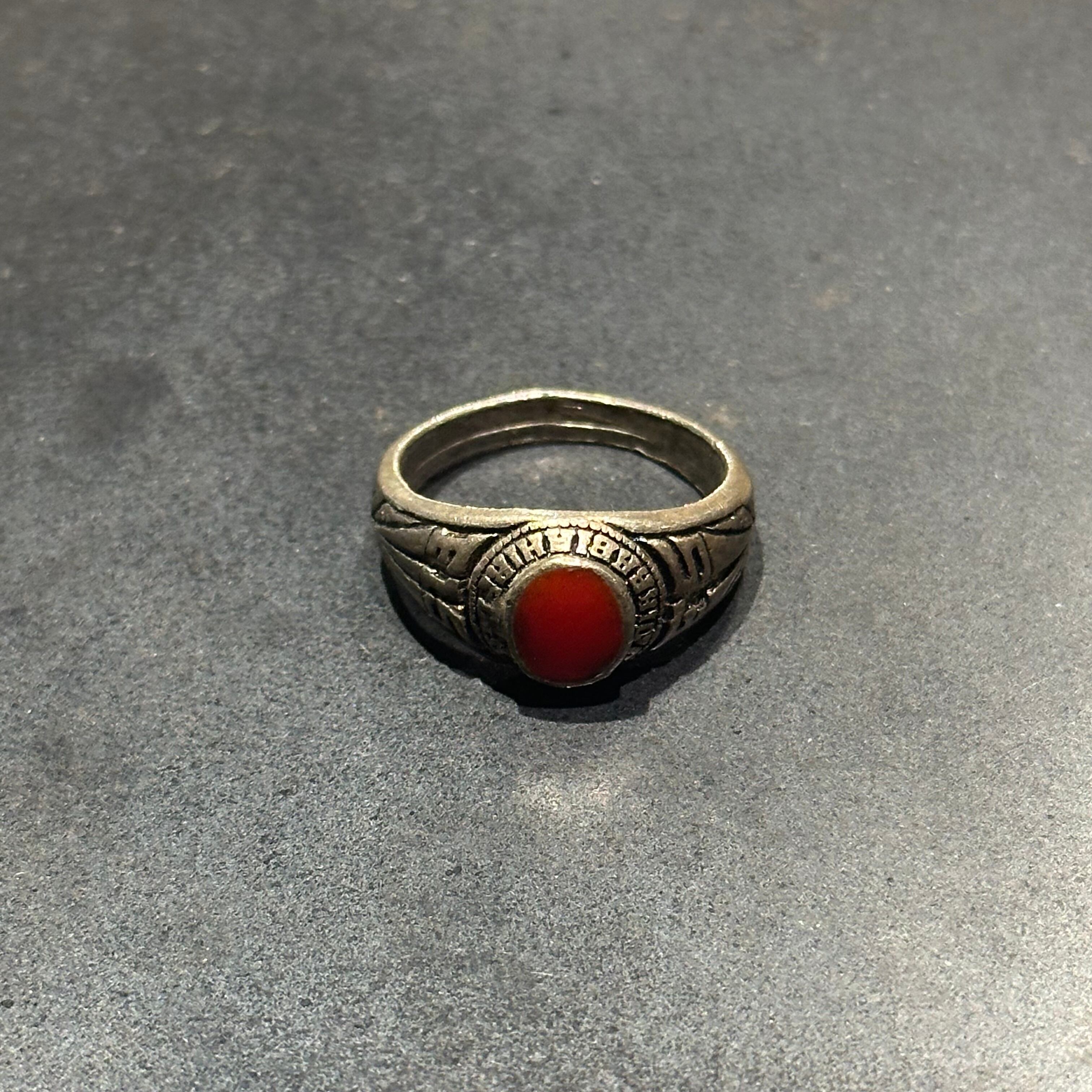 海外で買い付けたレッドストーンデザインのシルバーリングです。