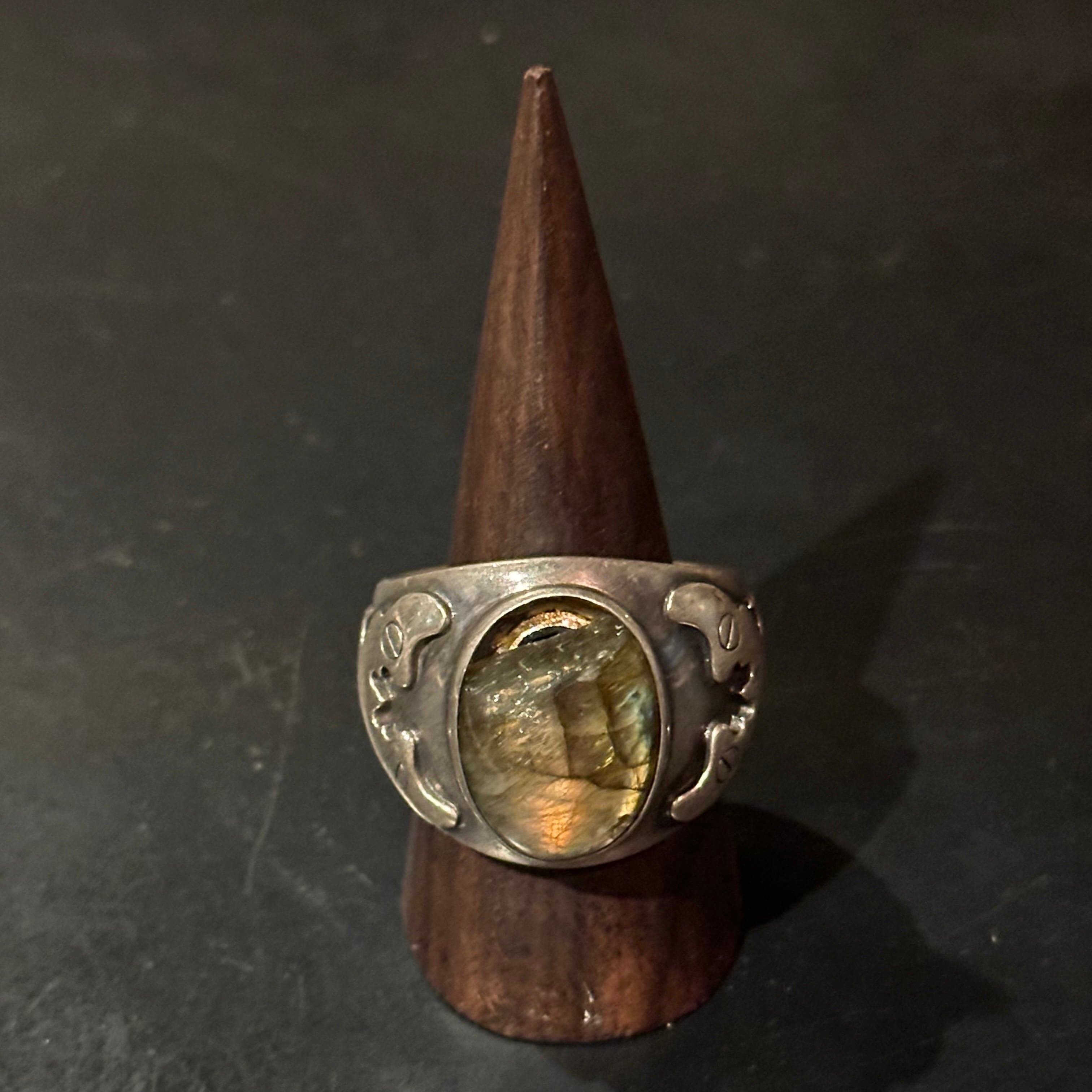 海外で買い付けたビッグストーンデザインのシルバーリングです。