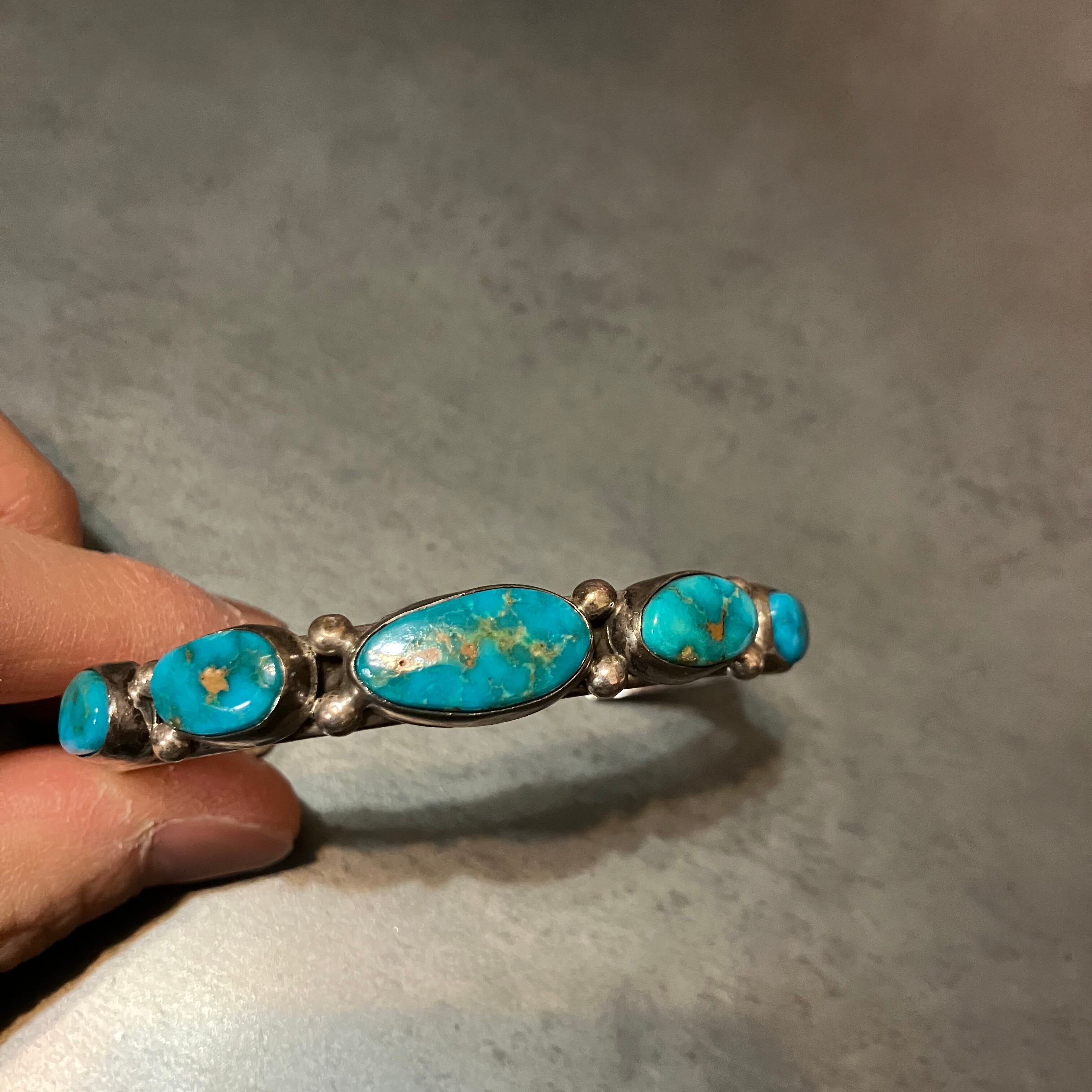海外で買い付けたターコイズデザインのシルバーバングルです。