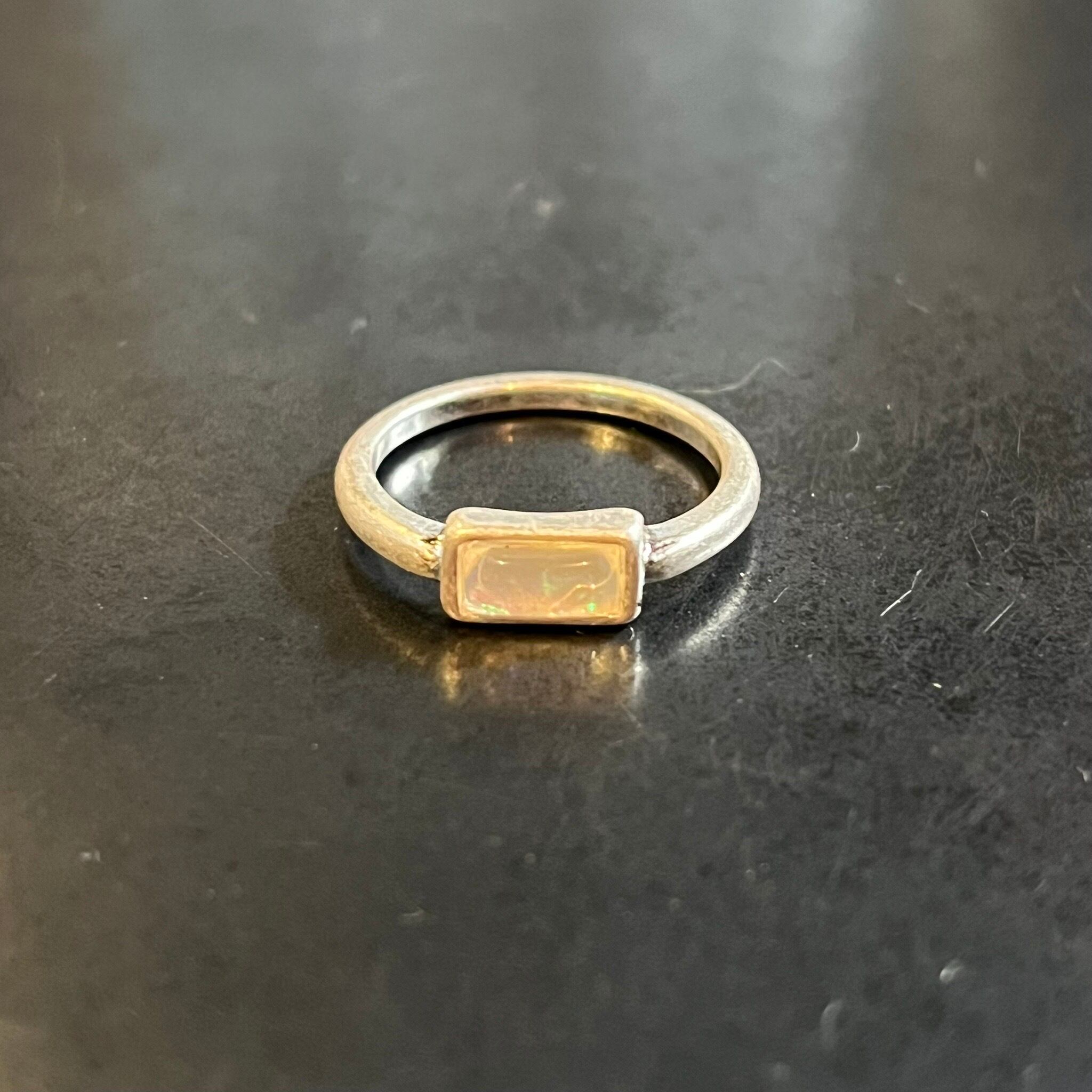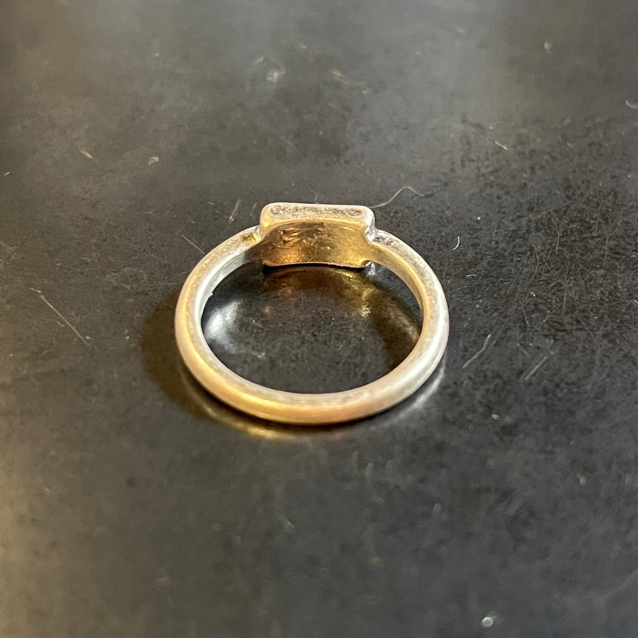 海外で買い付けたスクエアストーンデザインのシルバーリングです。