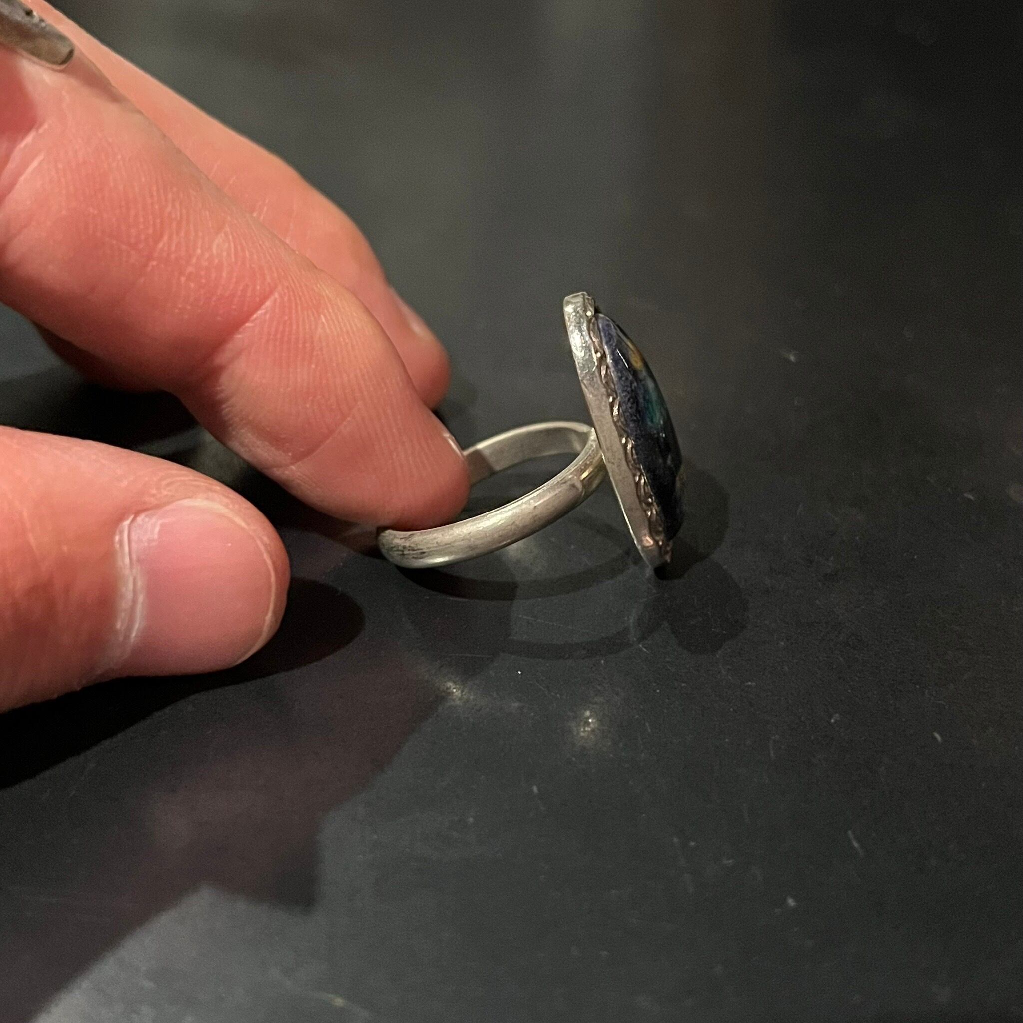 海外で買い付けたカラフルストーンデザインのシルバーリングです。