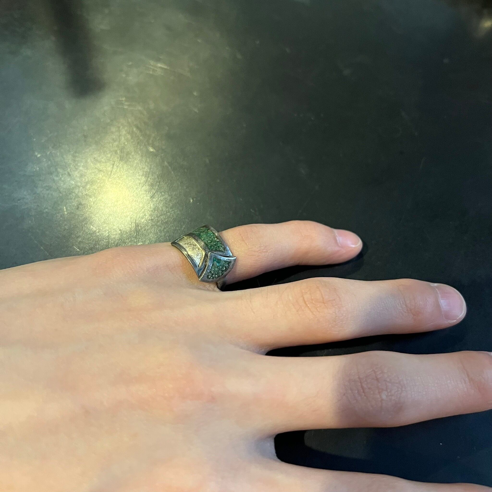 海外で買い付けたグリーンストーンのリングです。