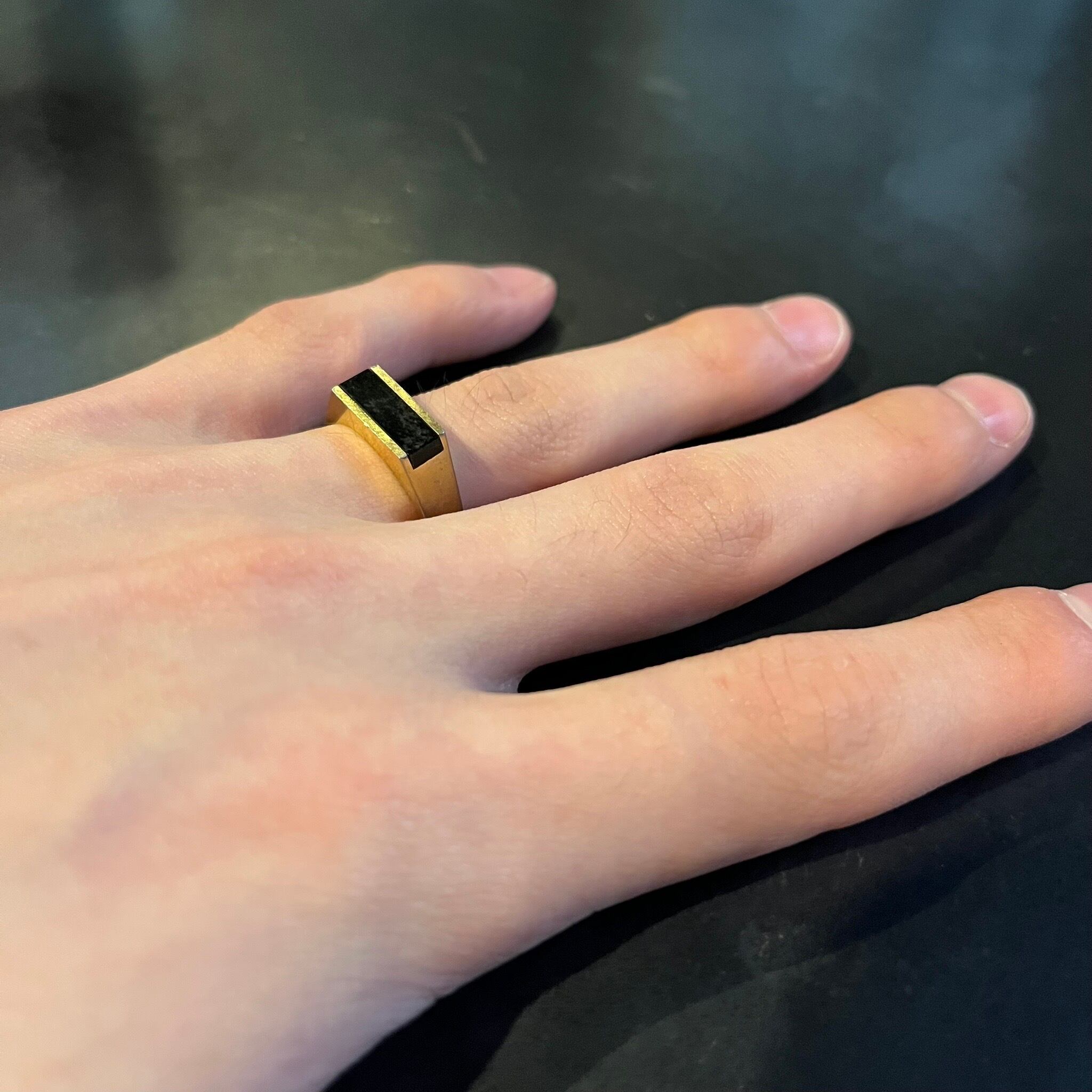 海外で買い付けたスクエアブラックストーンデザインのシルバーリングです。