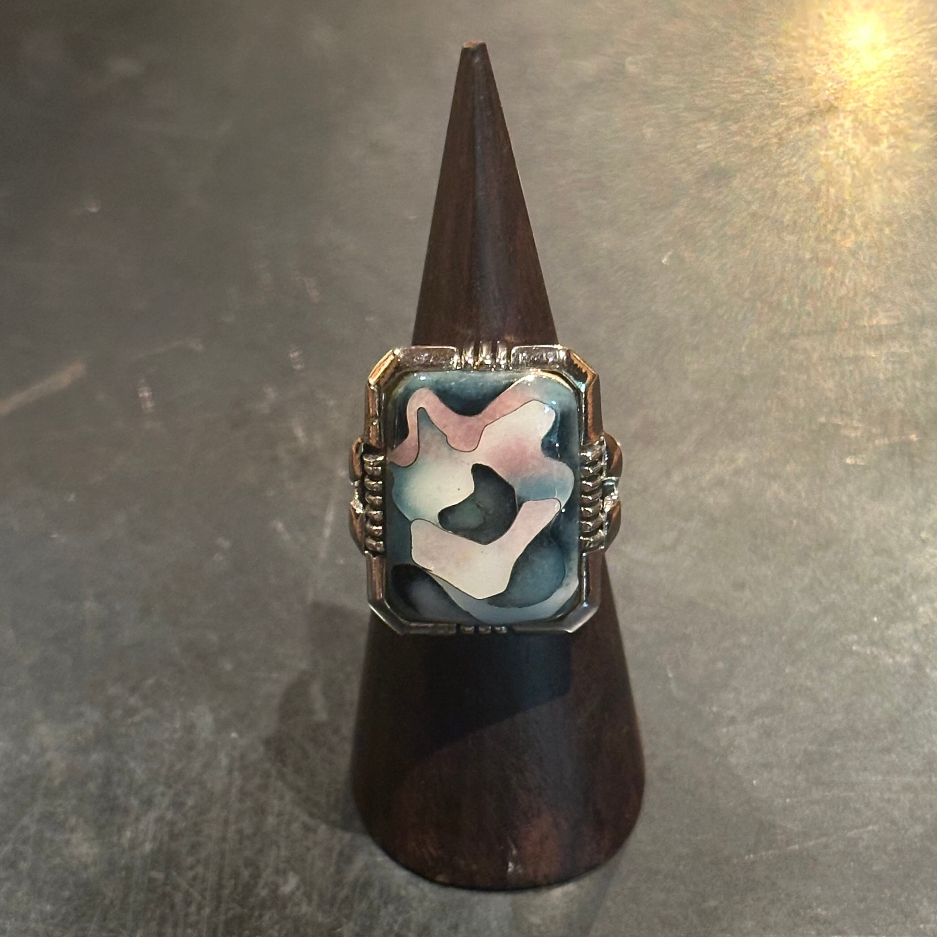 海外で買い付けたカラフルスクエアデザインのシルバーリングです。