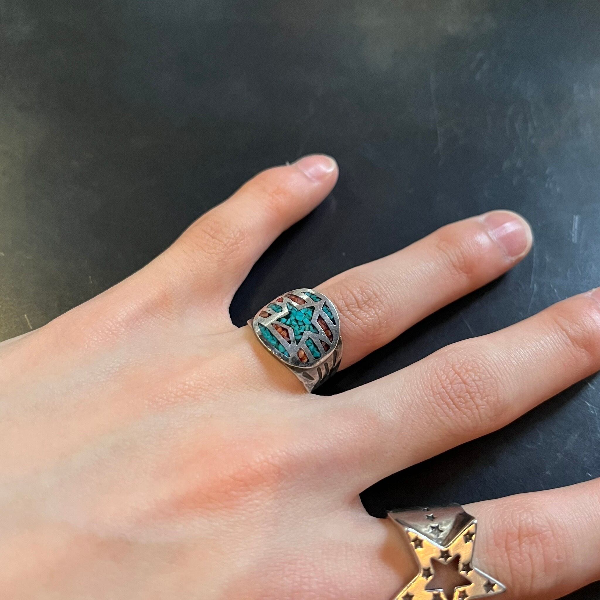 海外で買い付けたヴィンテージストーンインレイスターデザインのシルバーリングです。