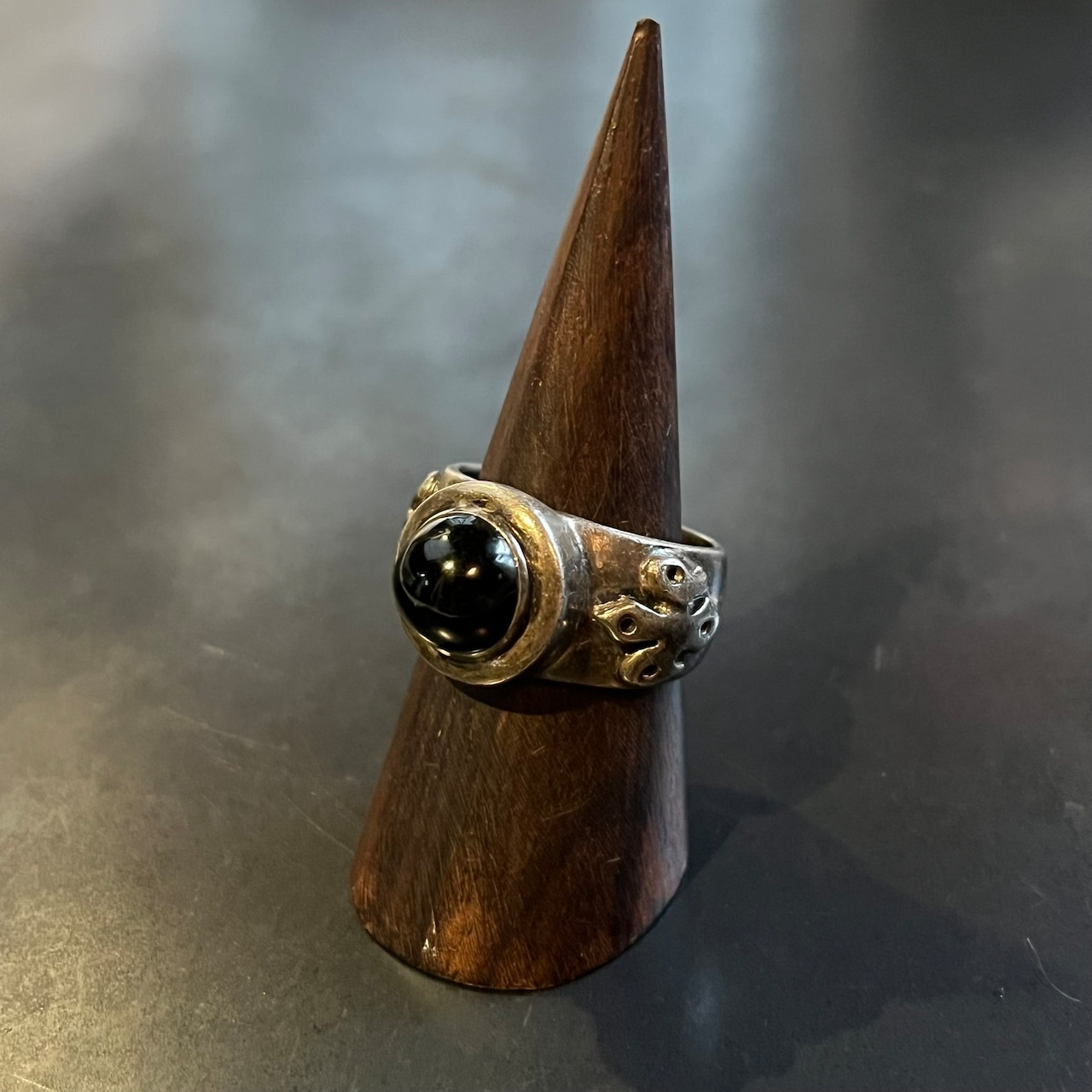 海外で買い付けたビッグオニキスストーンユニークデザインのシルバーリングです。