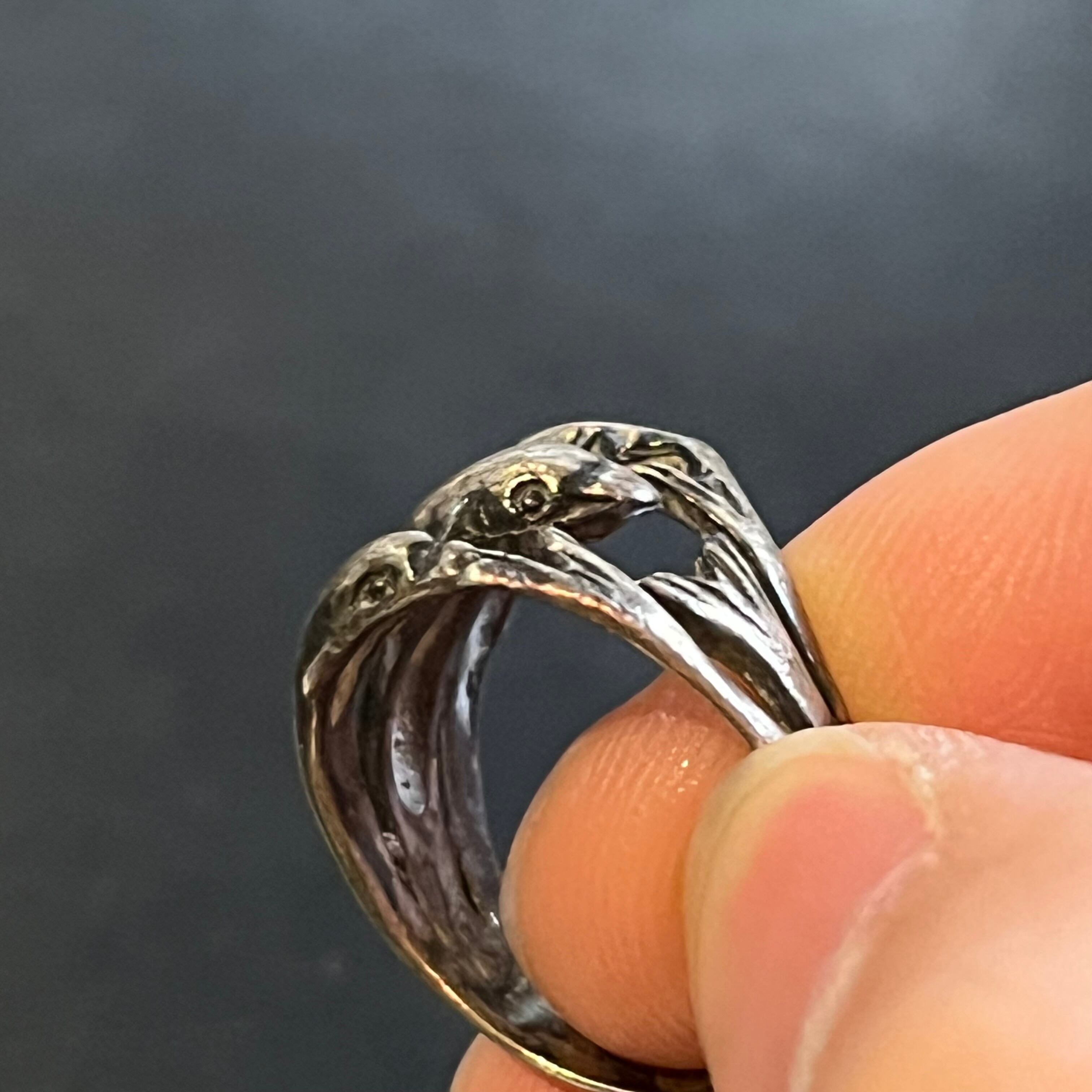 海外で買い付けたスリースネイクアニマルデザインのシルバーリングです。
