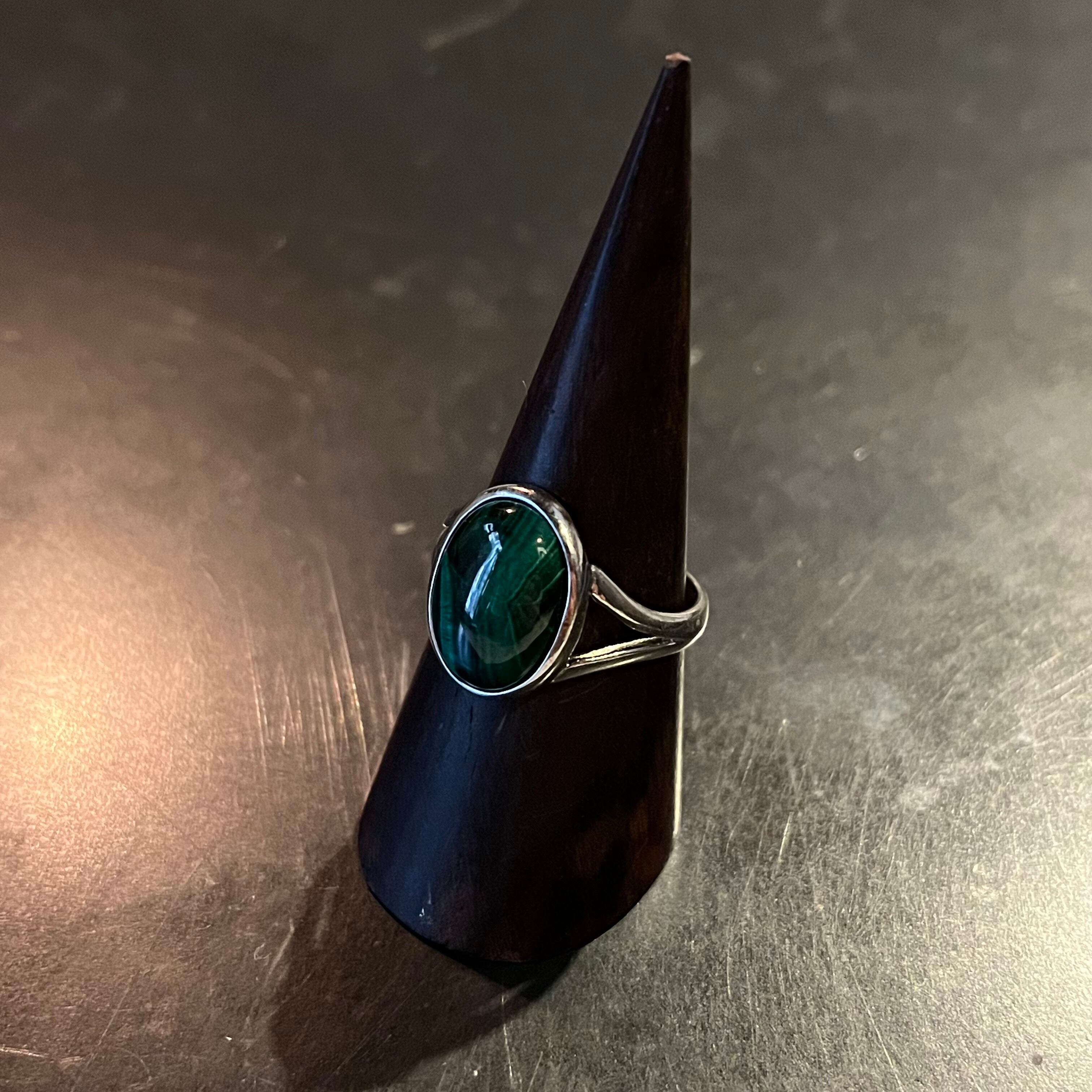 海外で買い付けたビッグマラカイトストーンオーバルのシルバーリングです。